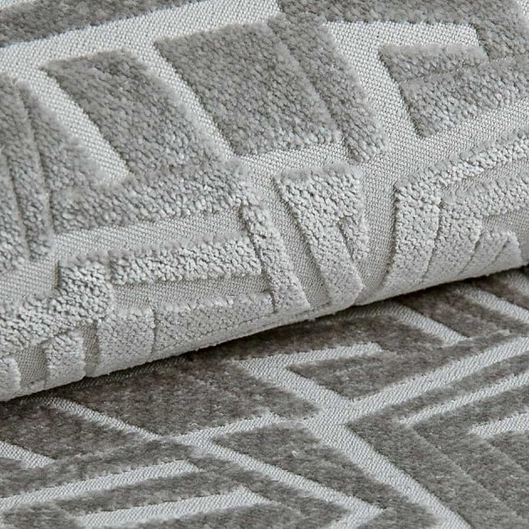 Audums, ko rotā ģeometriski raksti ar 3D efektu, ir ideāls akcents jebkuram interjeram. Audumu drīkst tīrīt tikai ar maigiem polsterējumam paredzētiem tīrīšanas līdzekļiem.