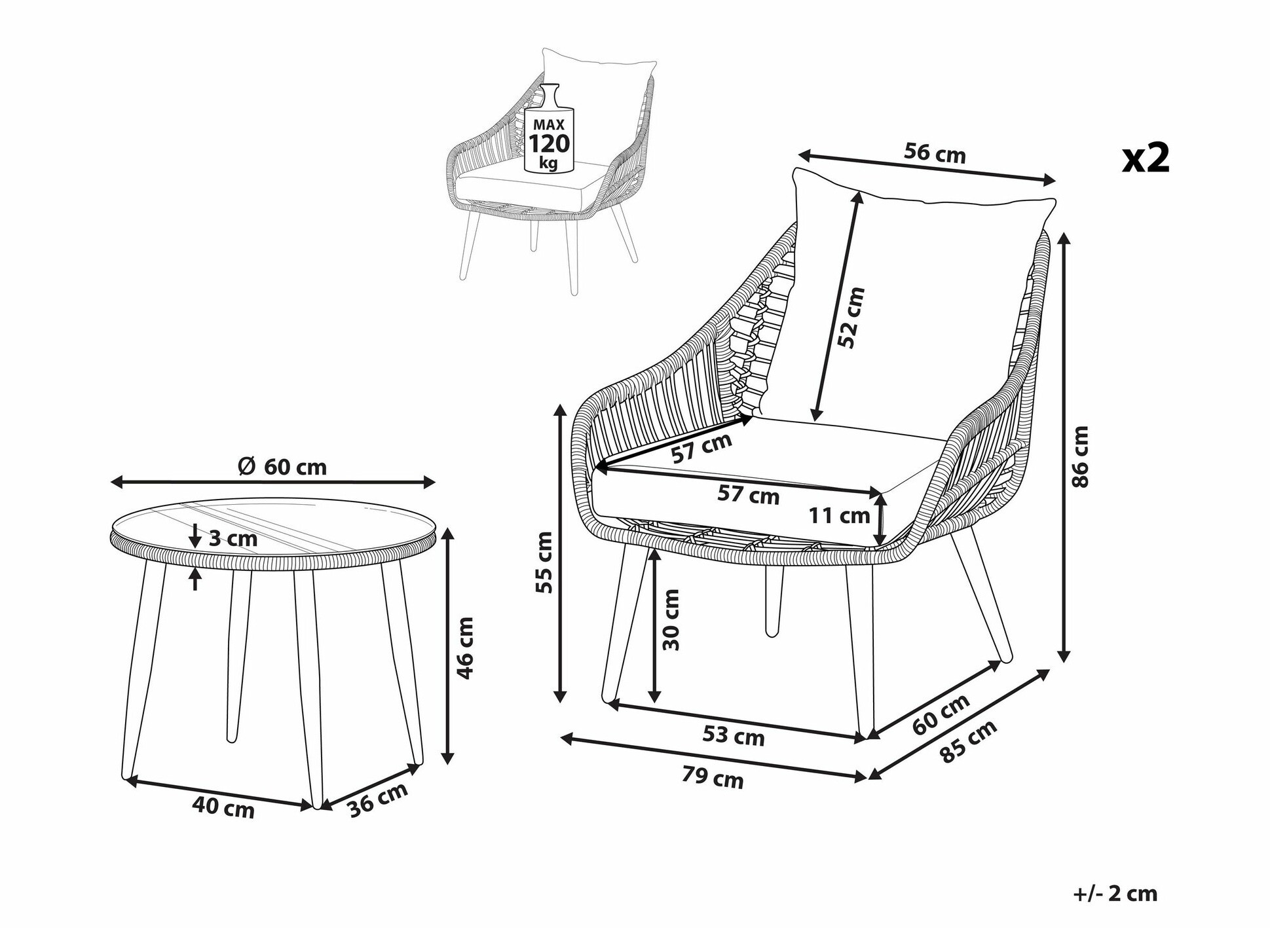 86 x 79 x 85 cm