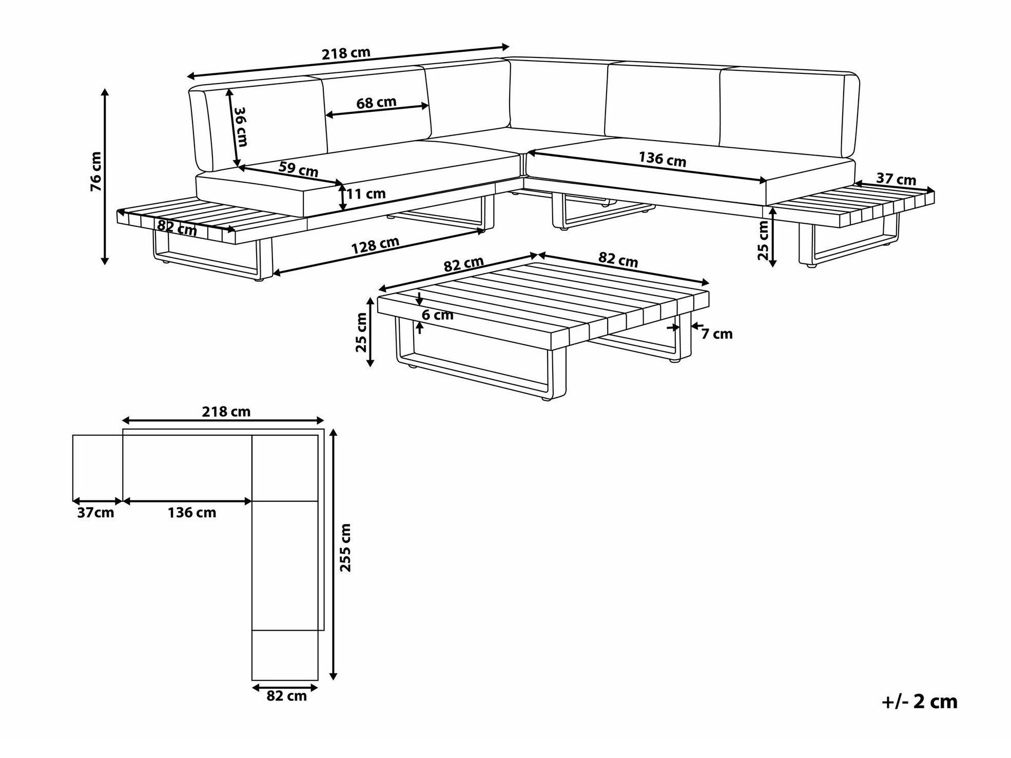 76 x 255 x 255 cm