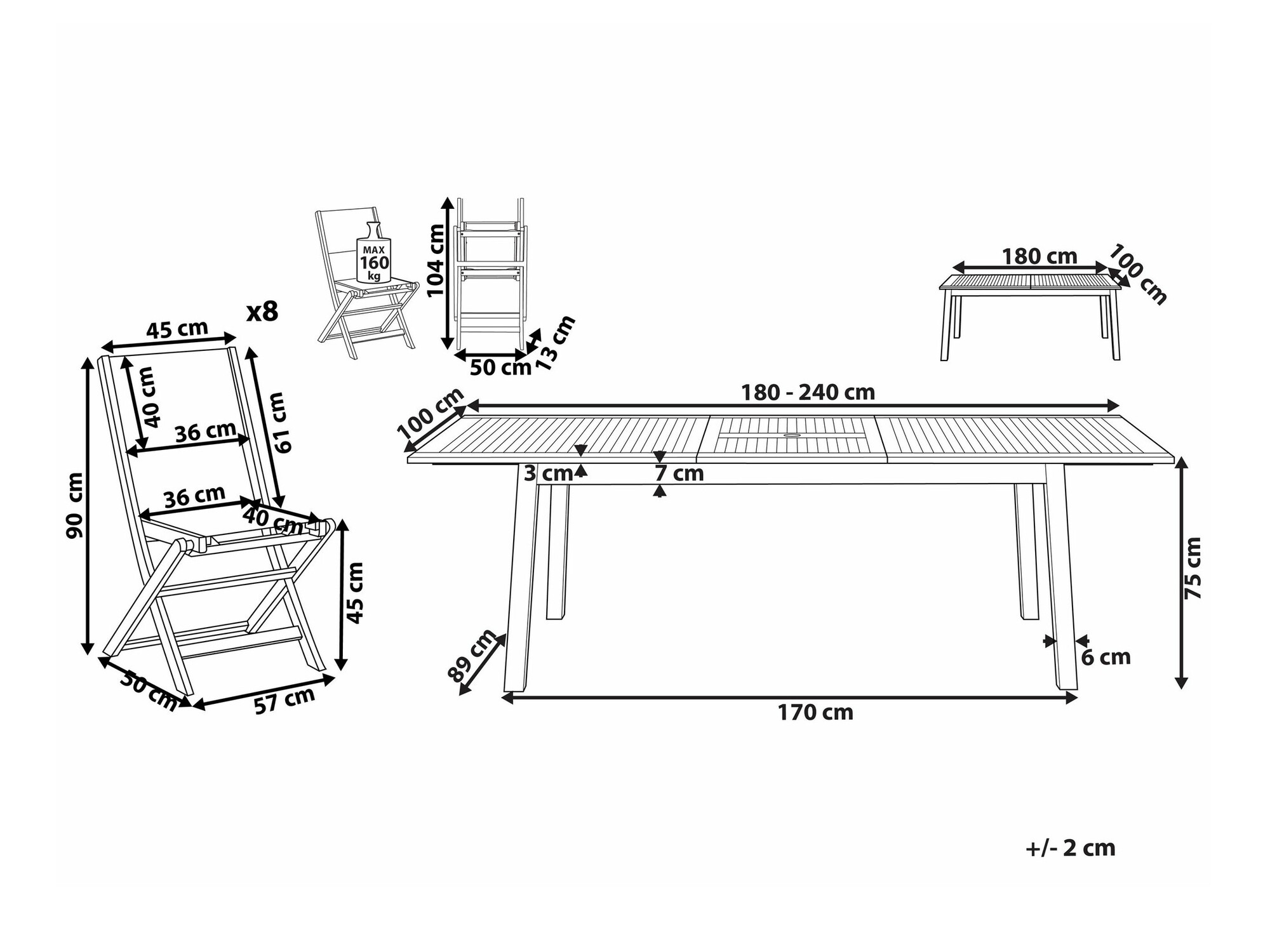 75 x 100 x 180 / 240 cm