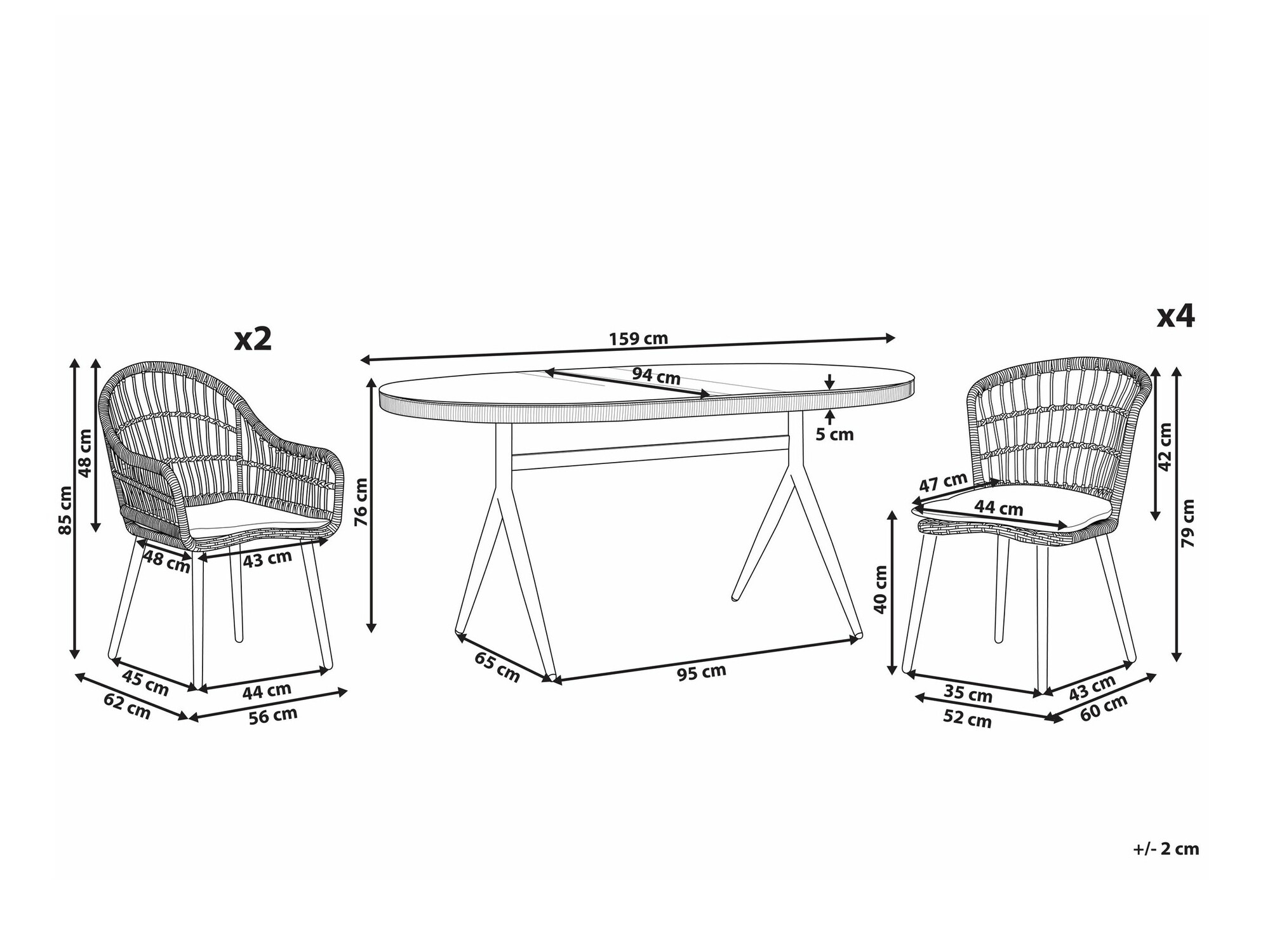 79 x 52 x 60; 85 x 56 x 62 cm