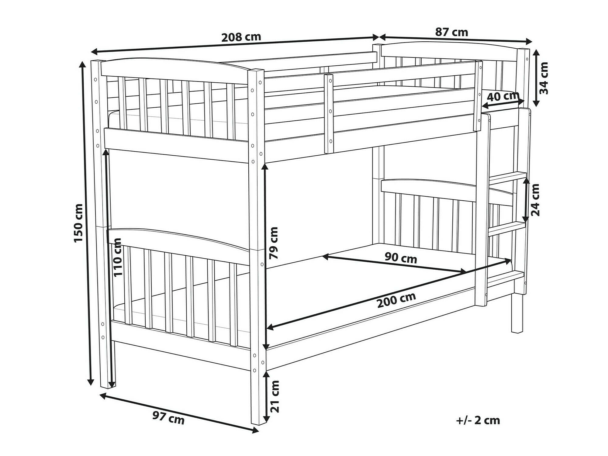 - 90 x 200 cm