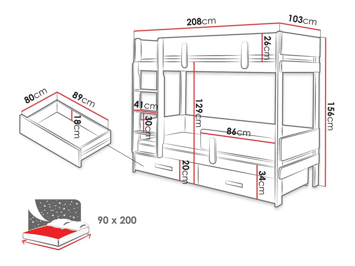 - 90 x 200 cm