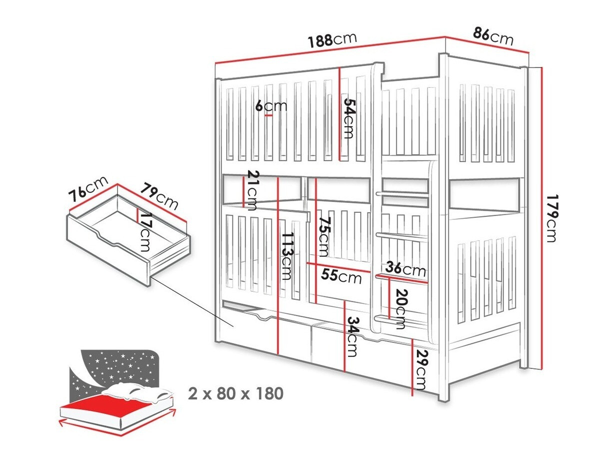 - 80 x 180 cm