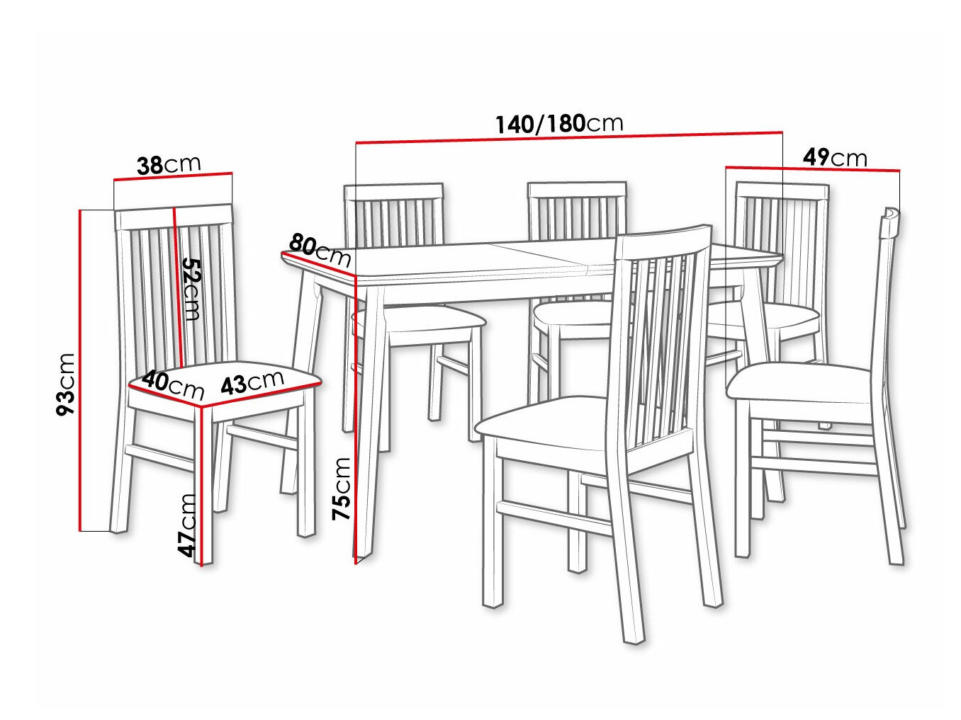 Krēsla izmēri: