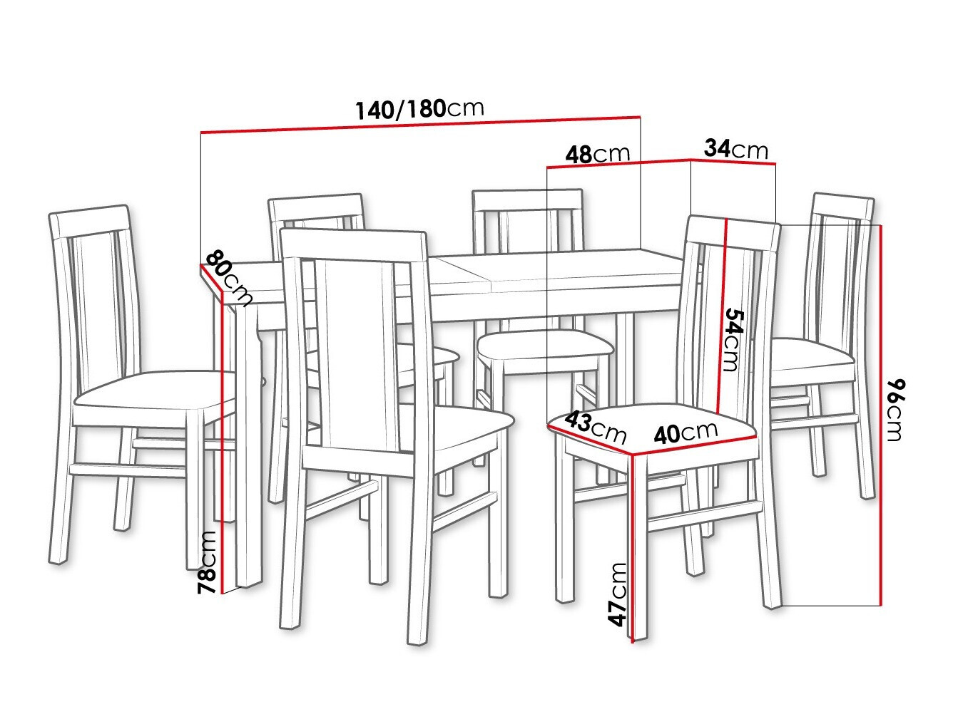 96 x 43 x 48 cm