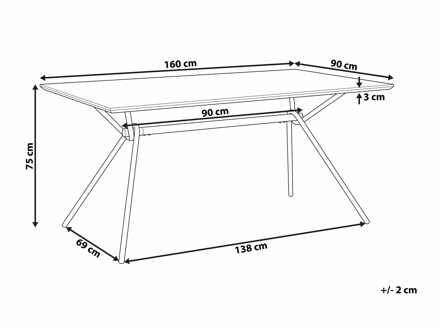 Galda virsmas biezums: