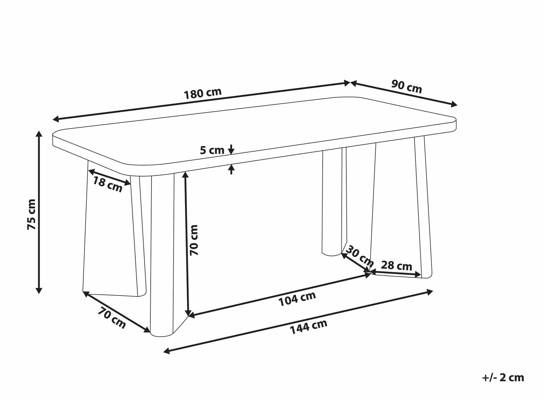 Galda virsmas biezums:
