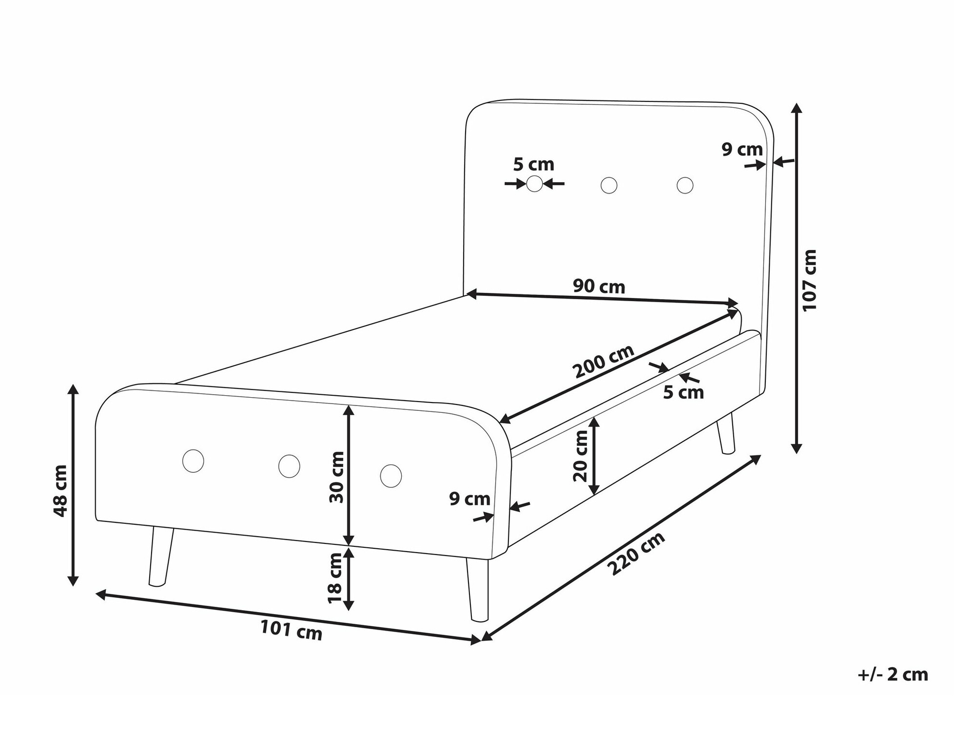 - 90 x 200 cm