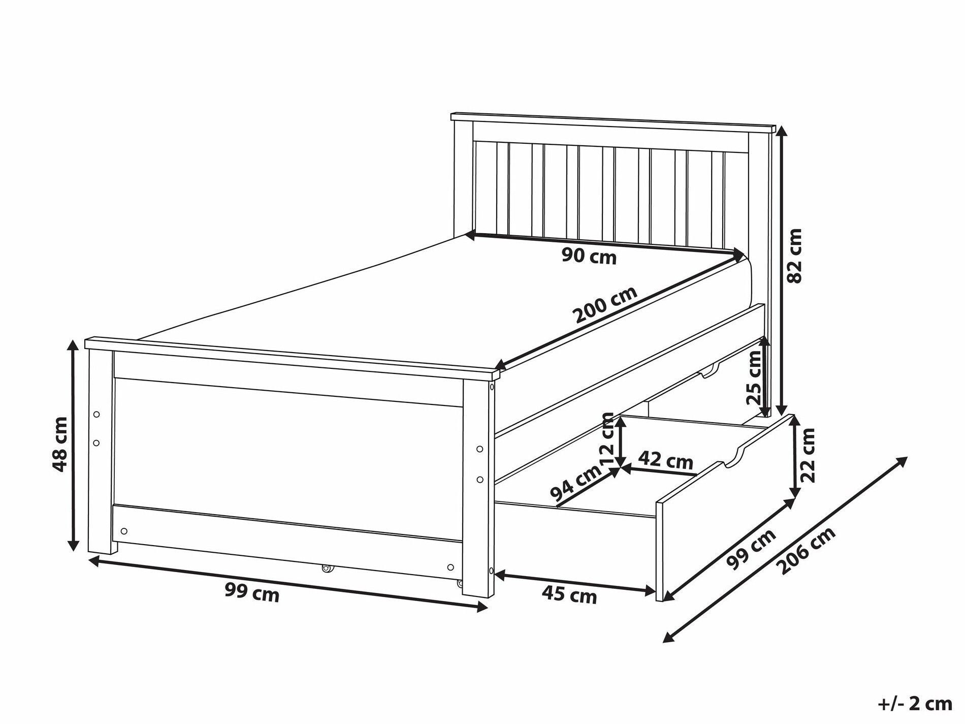 - 90 x 200 cm