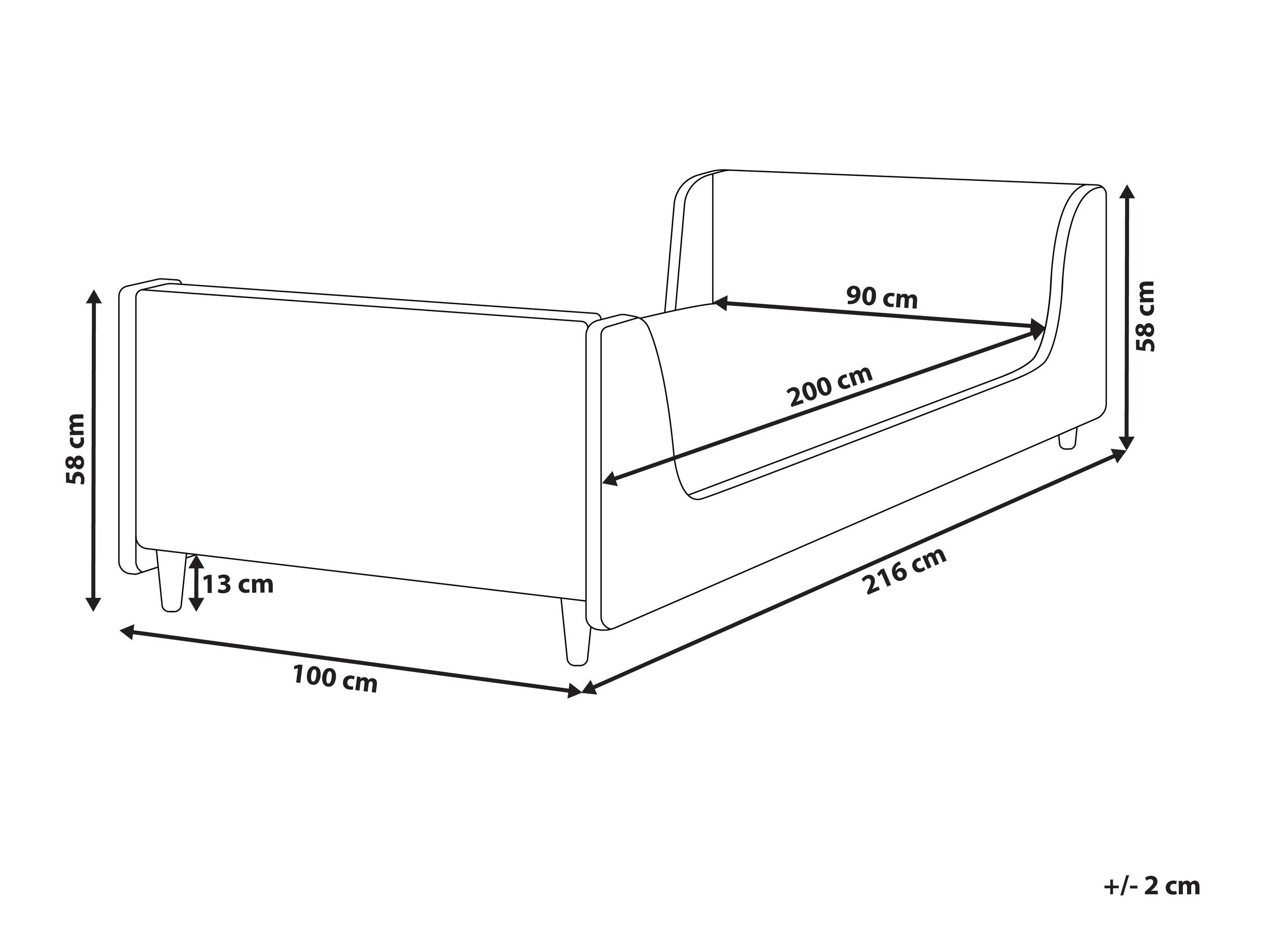 - 90 x 200 cm