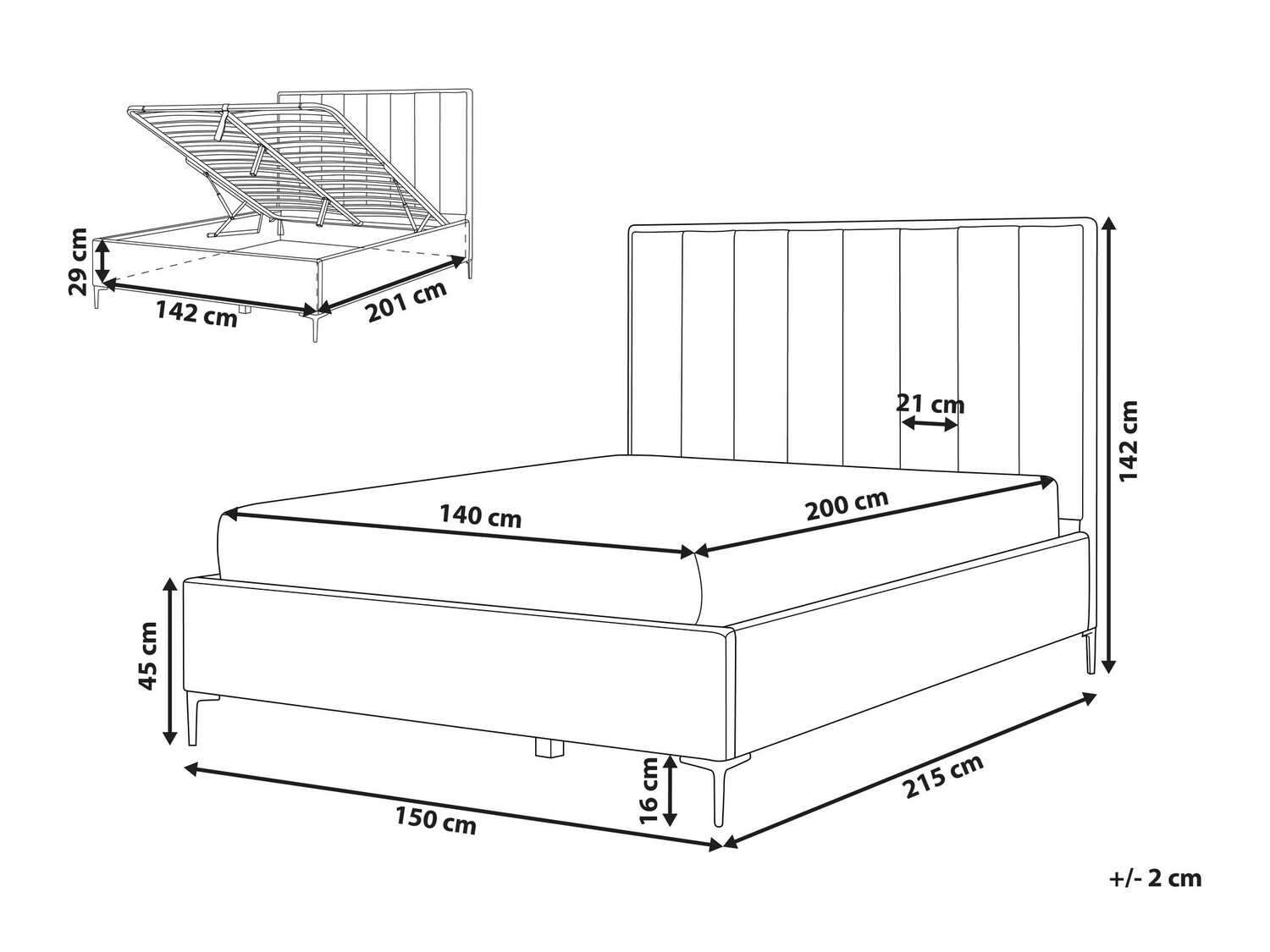 Подходит для матраса 140 x 200 cm
