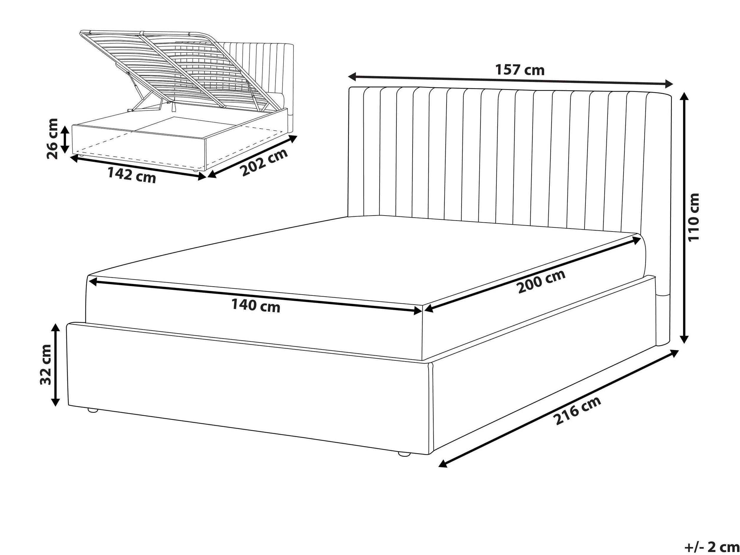 26 x 142 x 202 cm