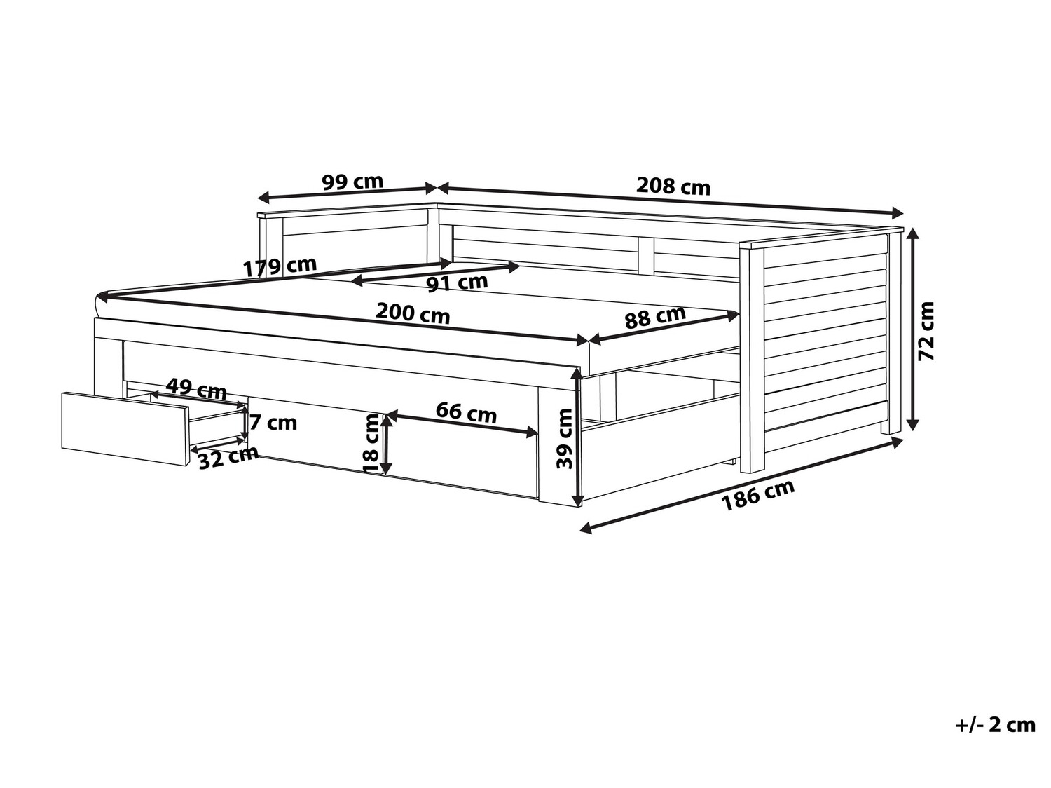 - 90 x 200 cm