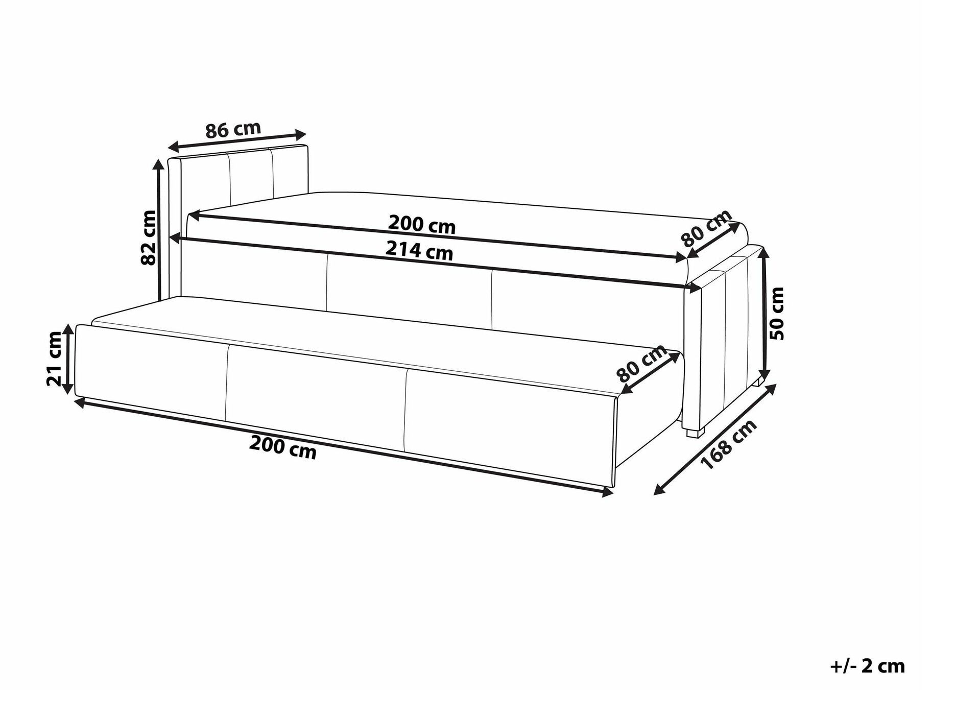 - 90 x 200 cm