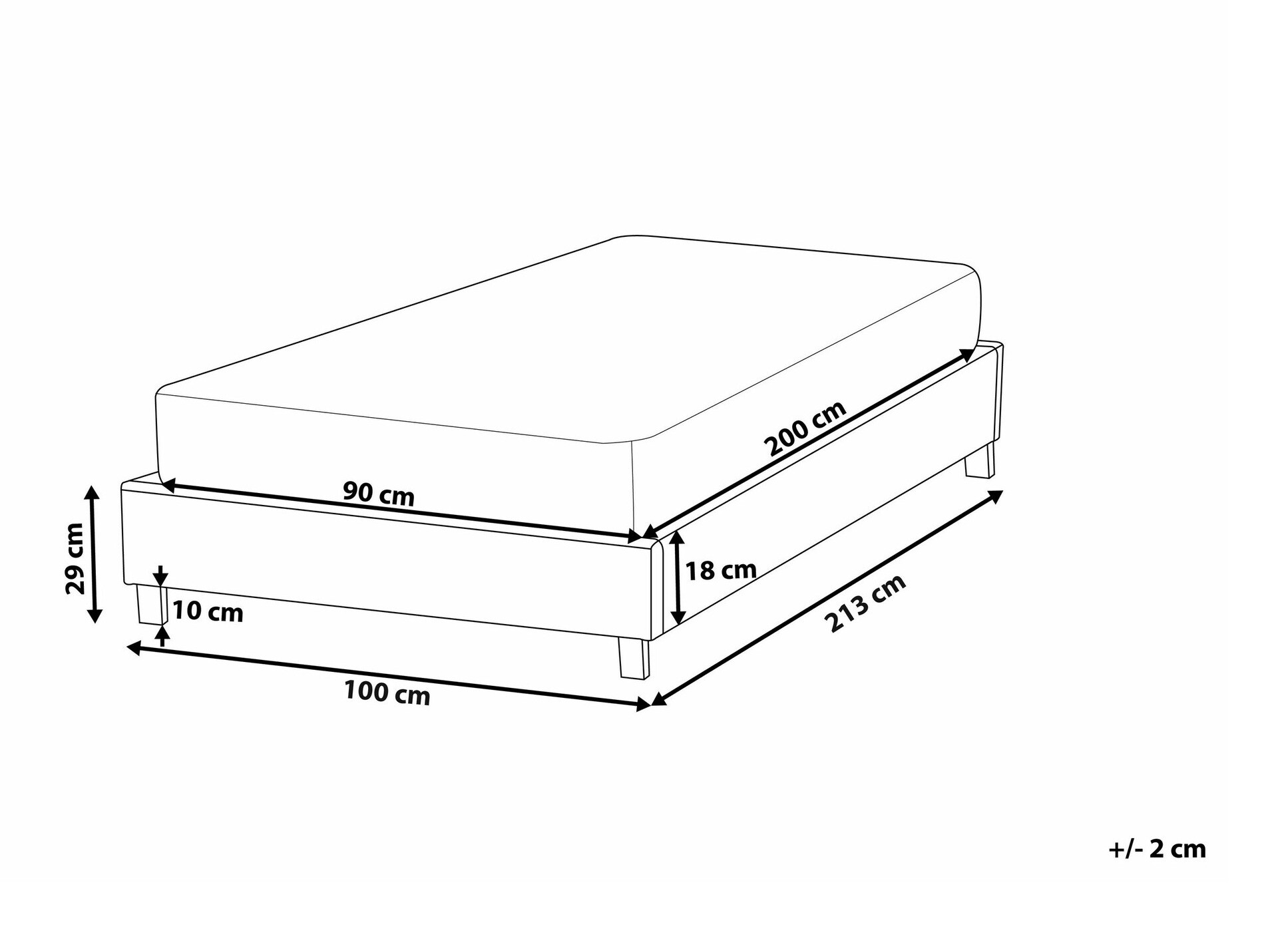 - 90 x 200 cm