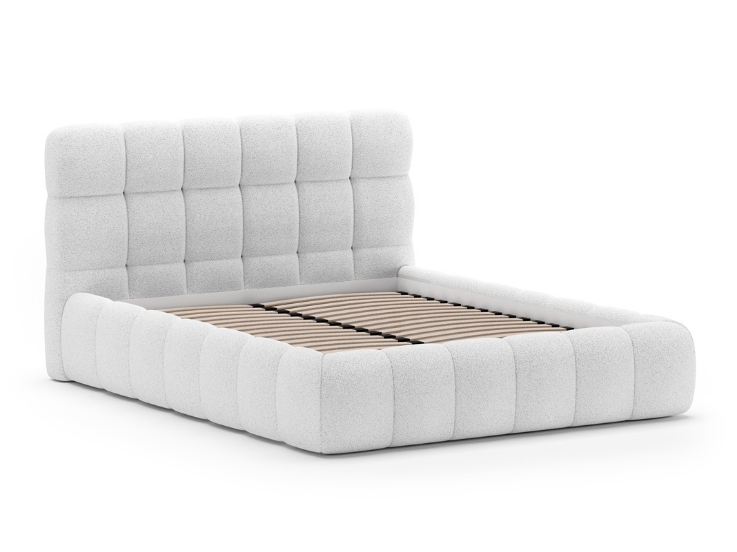 "Boucle" (Bouclé) audums ir pazīstams ar savu unikālo tekstūru, ko veido dažāda izmēra cilpas un mezgli. Tas piešķir mēbelēm raksturu un mājīgumu. Auduma tekstūra var būt mīksta vai līdzīga vilnai. Pateicoties izturīgajai struktūrai, šis audums labi saglabā formu, tāpēc tas ir piemērots dīvāniem, krēsliem un citām mēbelēm. Ja mērķis ir radīt elegantu un modernu telpu, šī auduma mēbeles būs lieliska izvēle.
