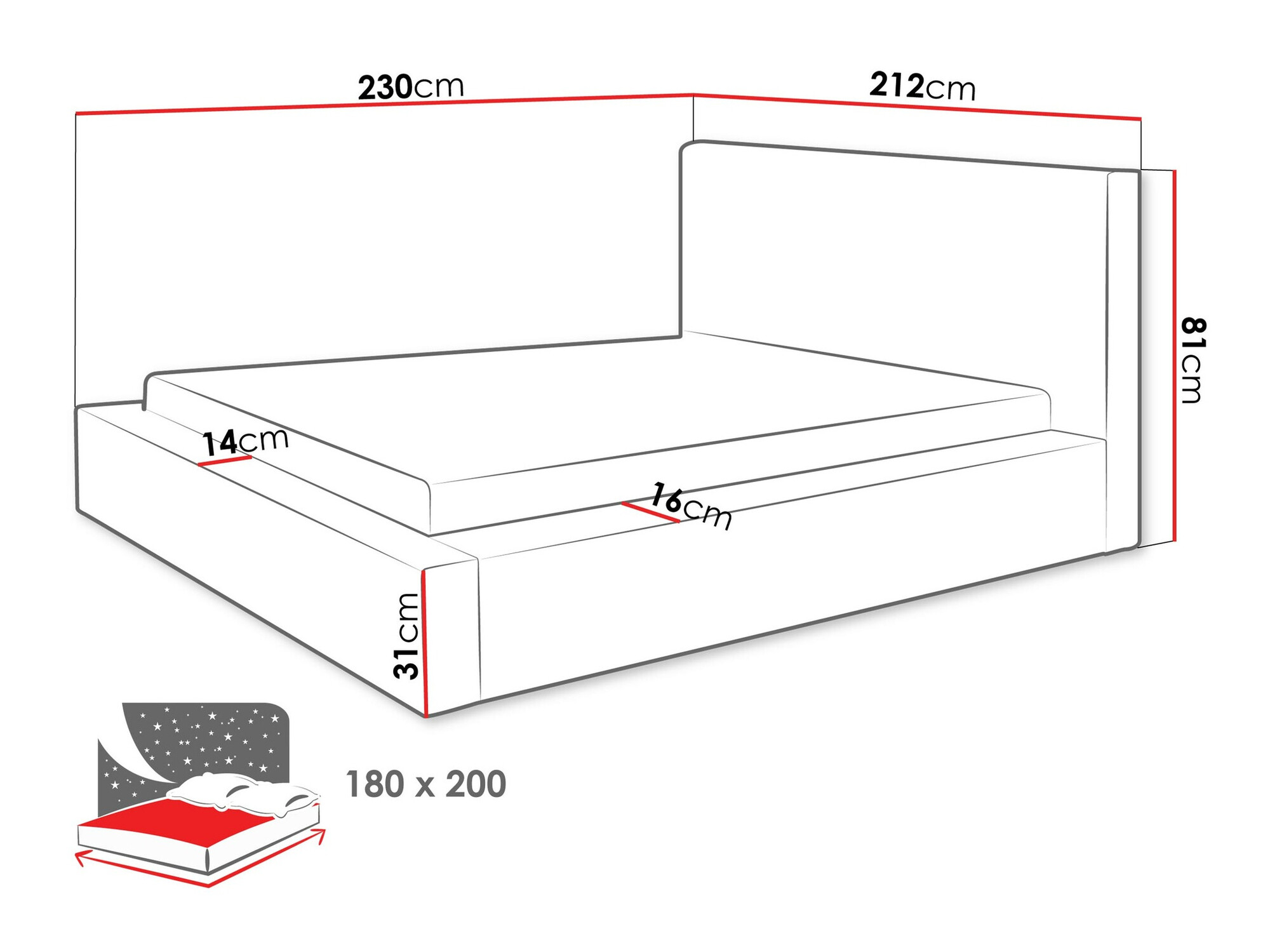 - 180 x 200 cm