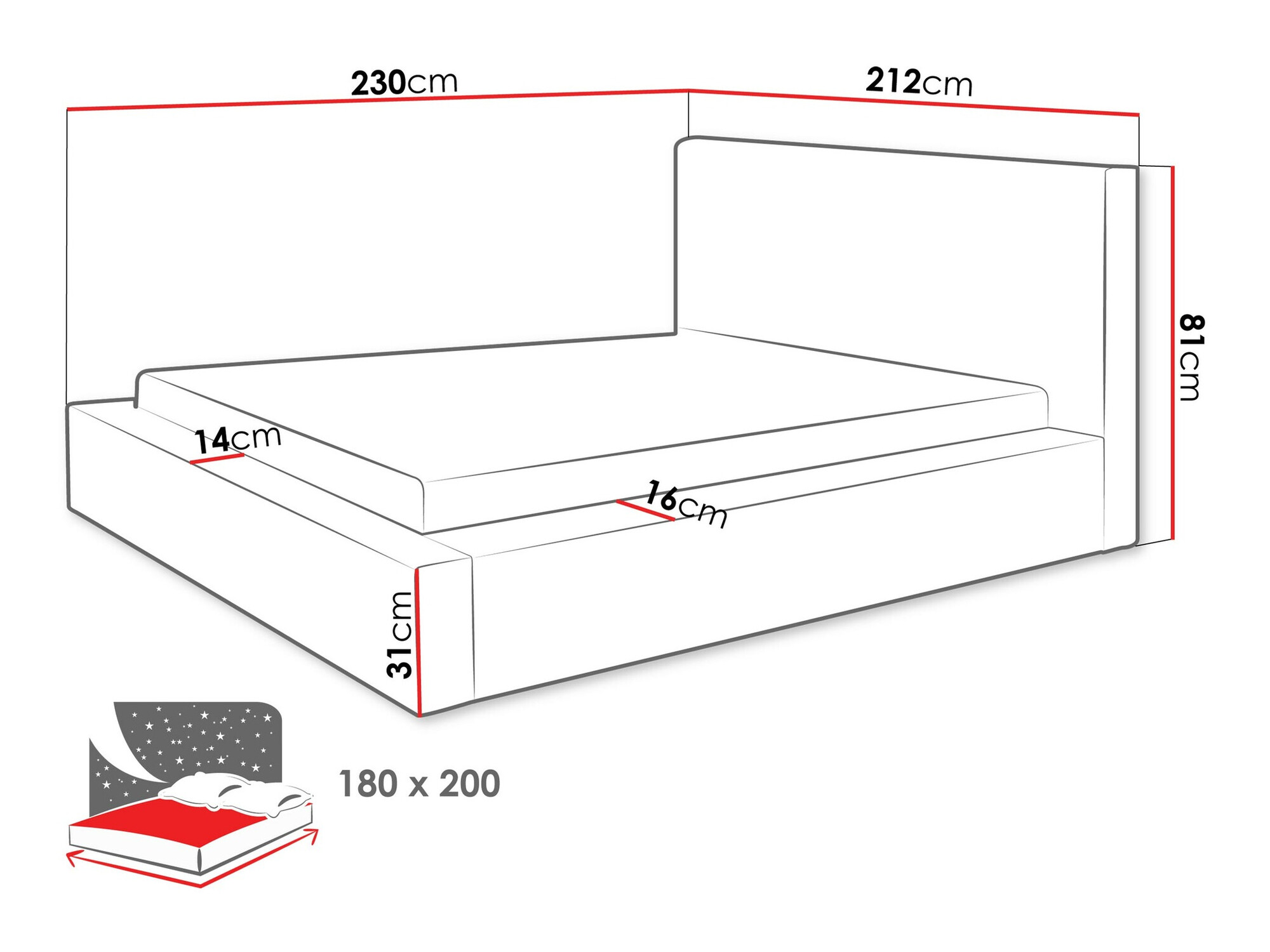 - 180 x 200 cm