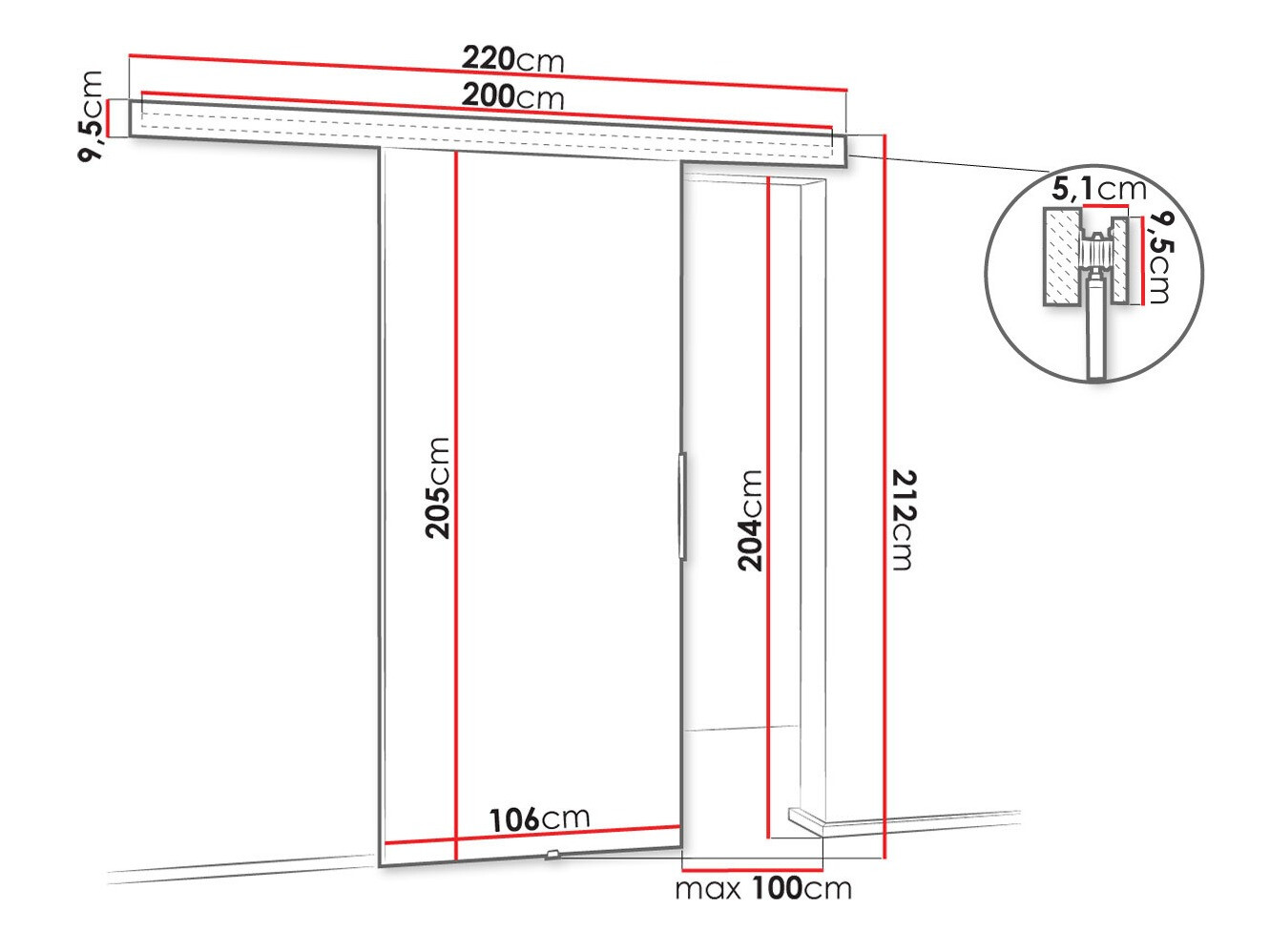 Размер системы раздвижных дверей: