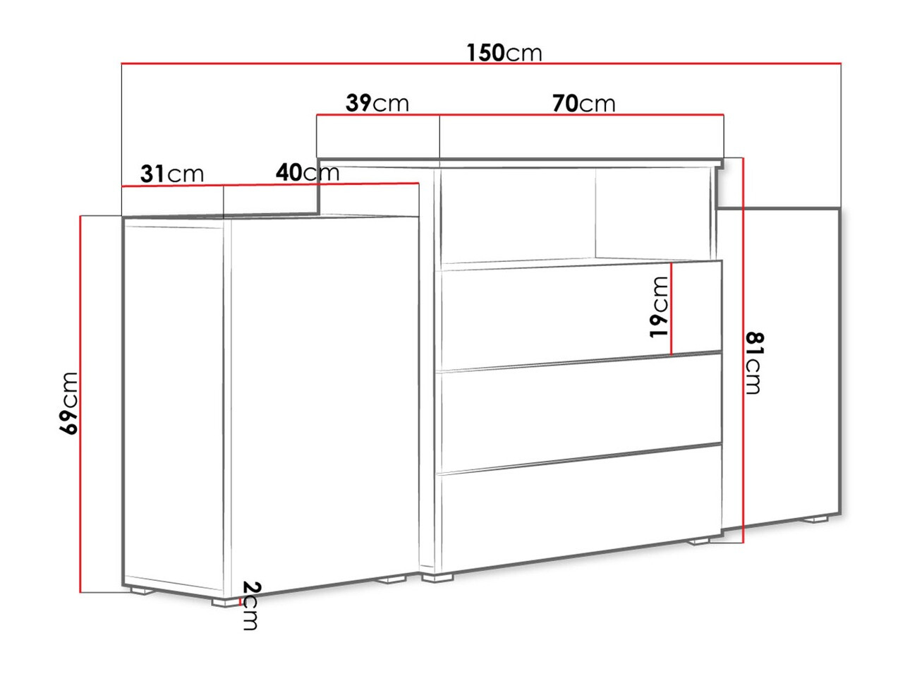 Tā ir ļoti skaista, tieši tāda pati kā bildē mājaslapā. Nav problēmu ar kvalitāti. Daudz kas iederas atvilktnēs/plauktos un dekoratīvie priekšmeti augšējās daļās. Spilgti baltā/koka kombinācija rada siltu, mājīgu efektu. Mums tas ļoti patīk!