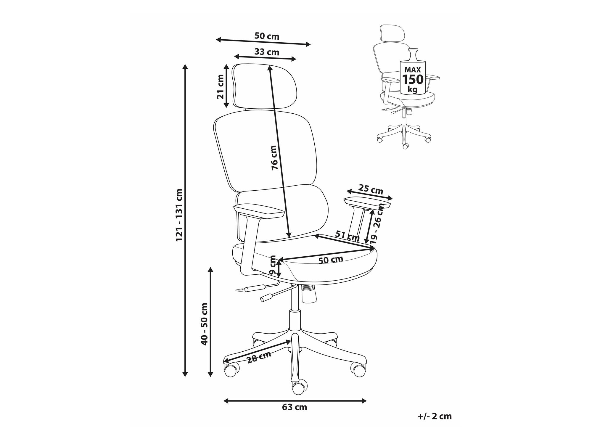 - Regulējams galvas balsts