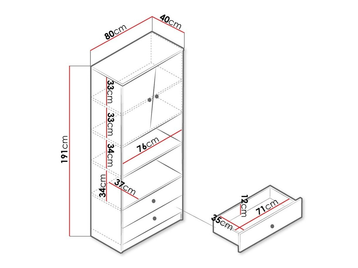 191 cm  80 cm  40 cm