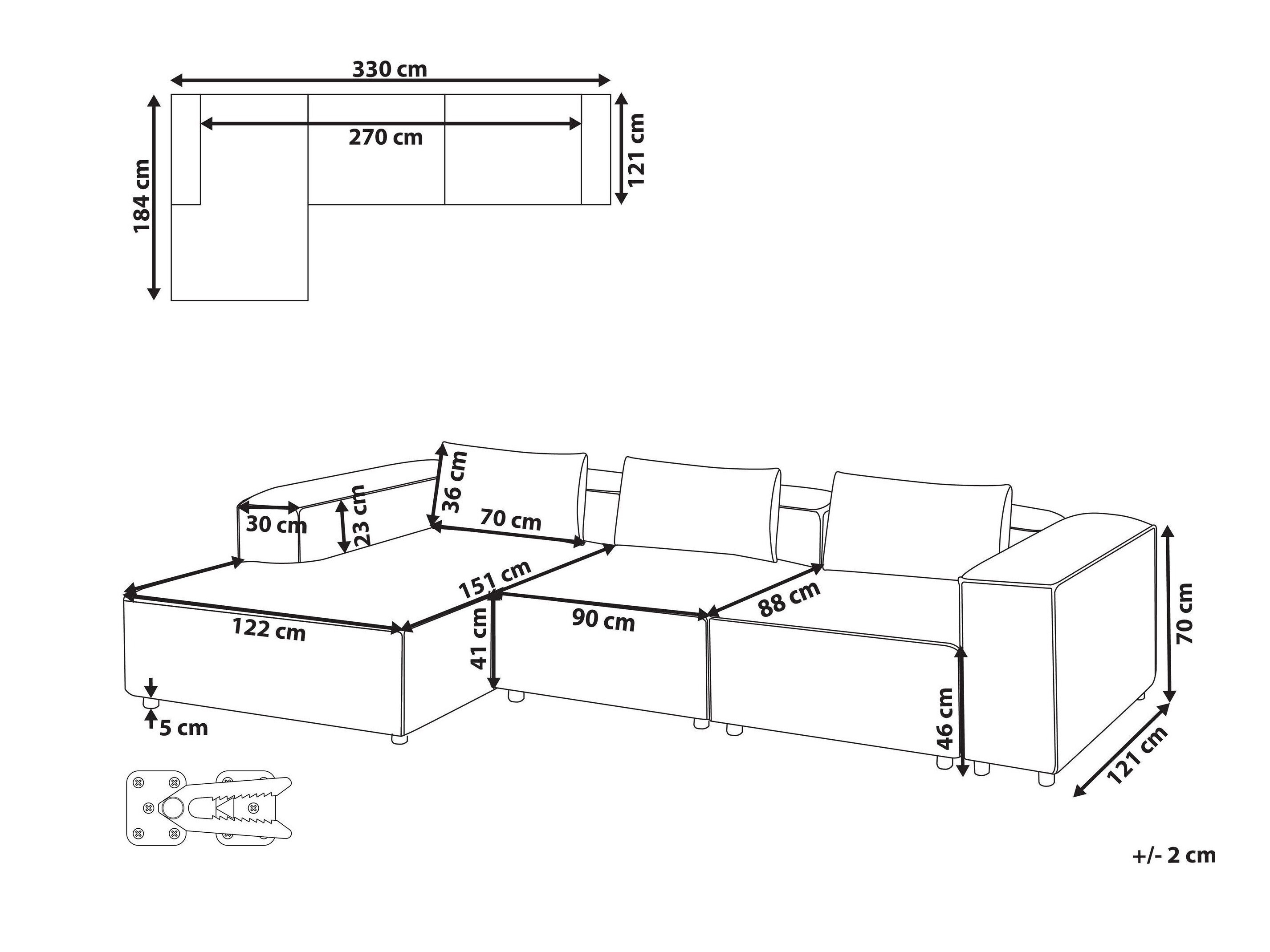 Stūra dīvāna variants: