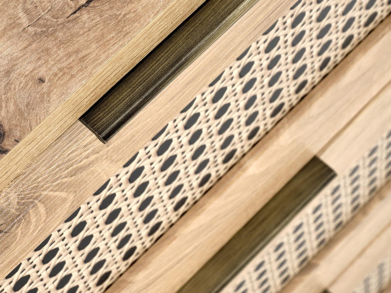 Rotangpalmas raksta uzlīme rada ļoti reālistisku pītās rotangpalmas izskatu. Šis risinājums ļauj izbaudīt dabiskā izskata rotangpalmas rakstu bez īpašas apkopes, kas būtu nepieciešama dabīgai rotangpalmas mēbelei. Dekoratīvā uzlīme tiek pielīmēta ražošanas laikā, tāpēc nav nepieciešams to papildus līmēt.