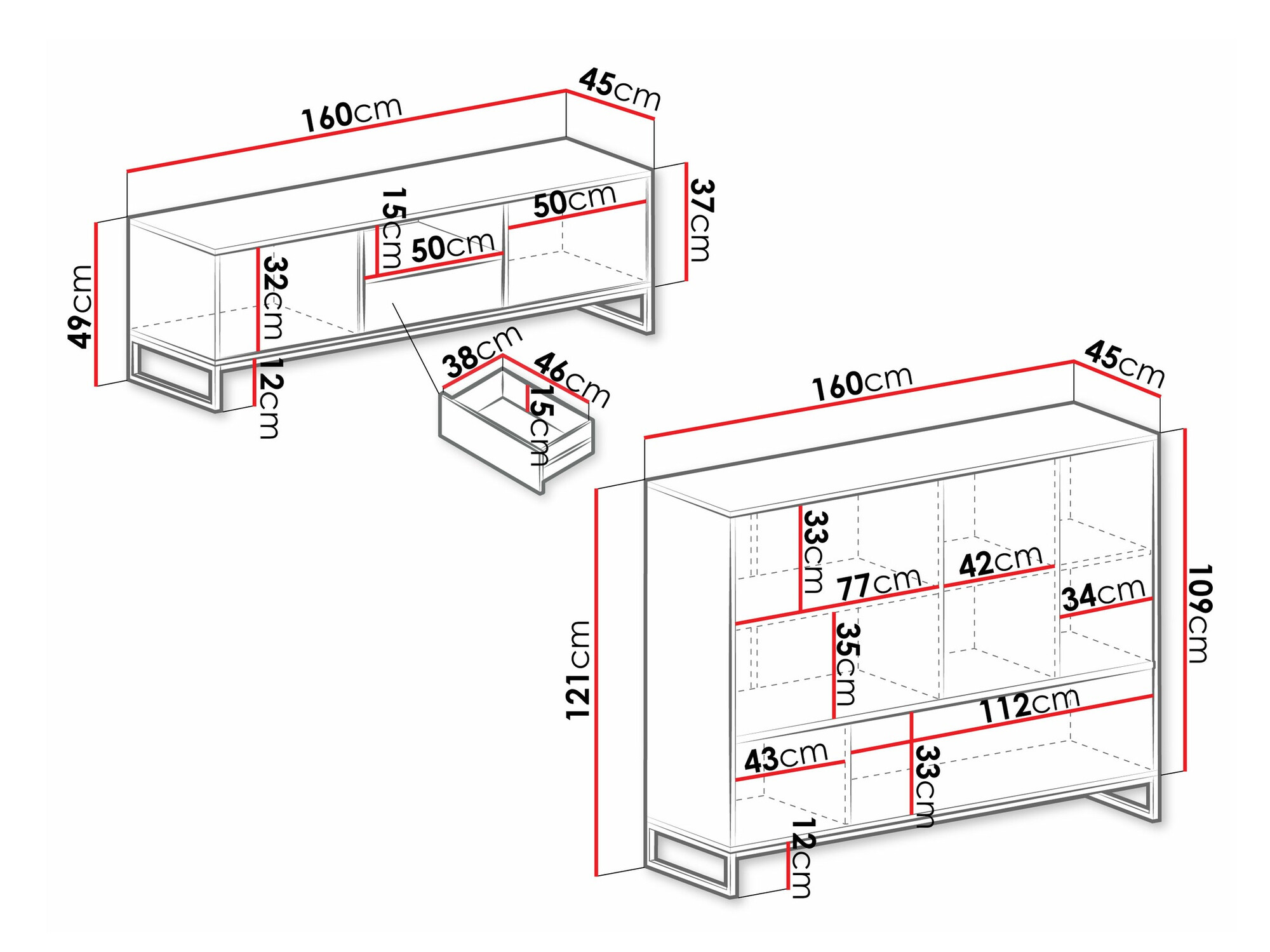 49 x 160 x 45 cm