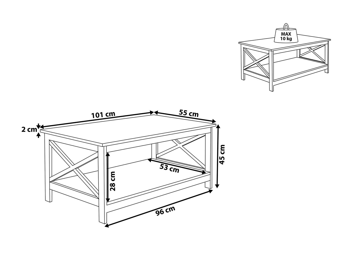 Darba virsmas maksimālā svara izturība: