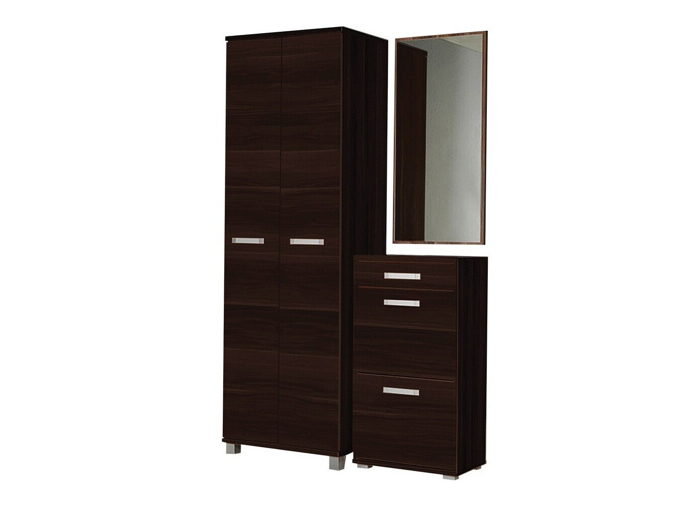 Mēbeļu priekšpuse un sāni ir izgatavoti no laminētas kokskaidu plātnes, ko raksturo izturība un smalka apdare. Paneļu malas aizsargā speciāla ABS apdares lente, kas izgatavota no stipras plastmasas un palīdz aizsargāt paneļu malas no nodiluma.