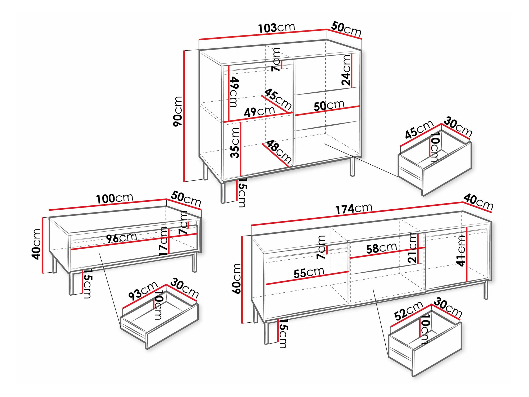 40 cm  50 cm  100 cm