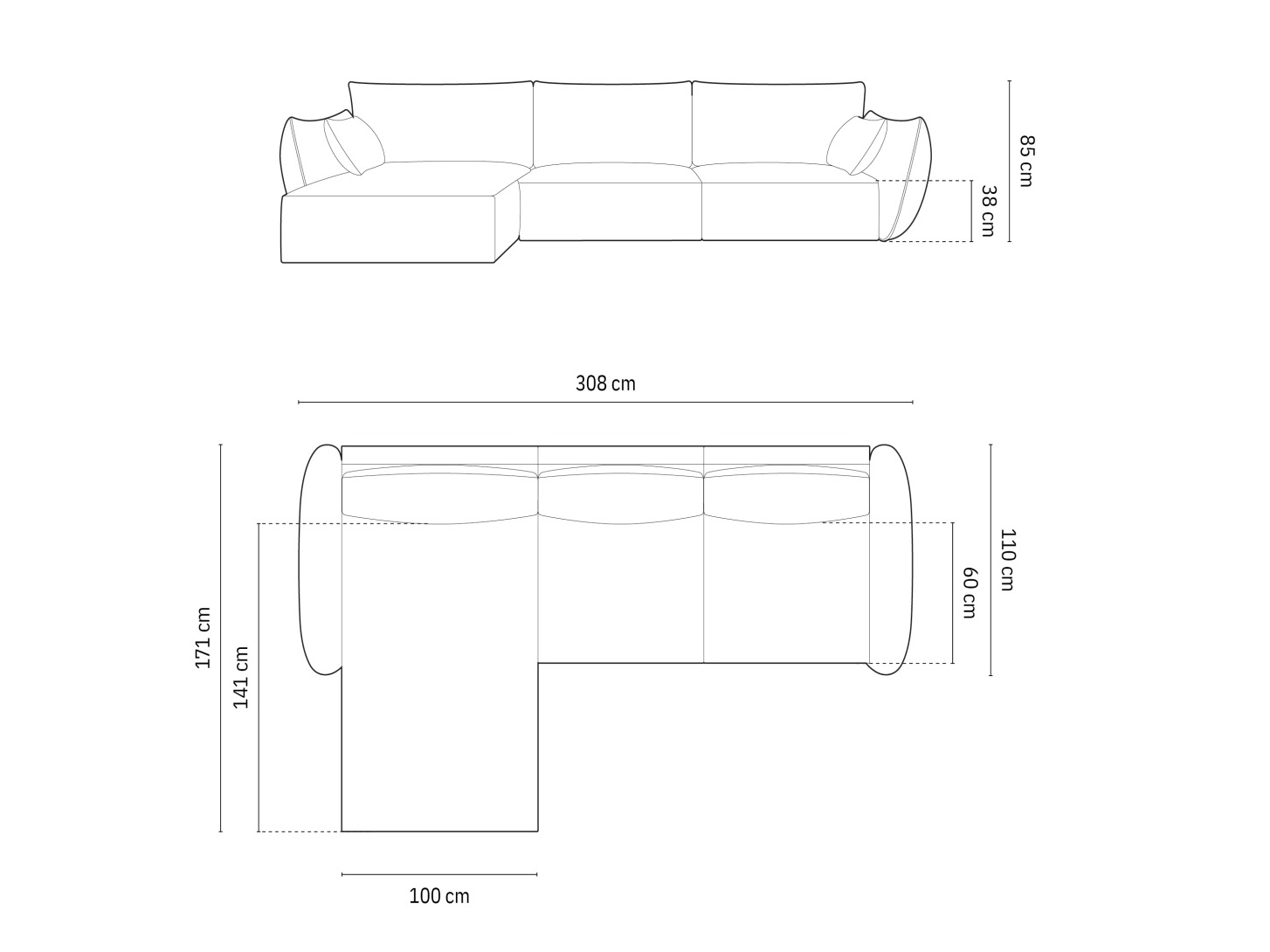 85 cm  208 cm  110 cm