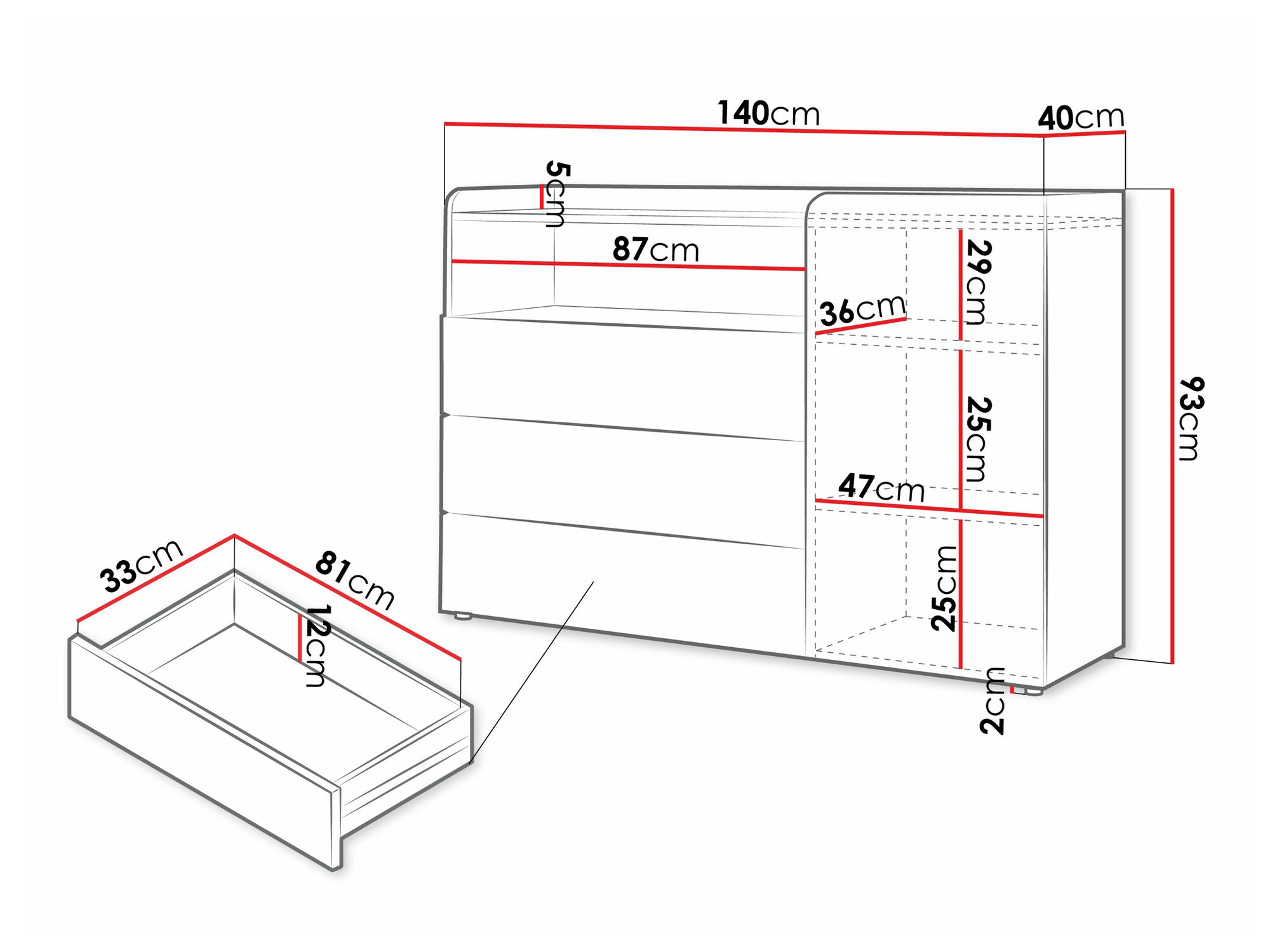 93 cm  140 cm  40 cm