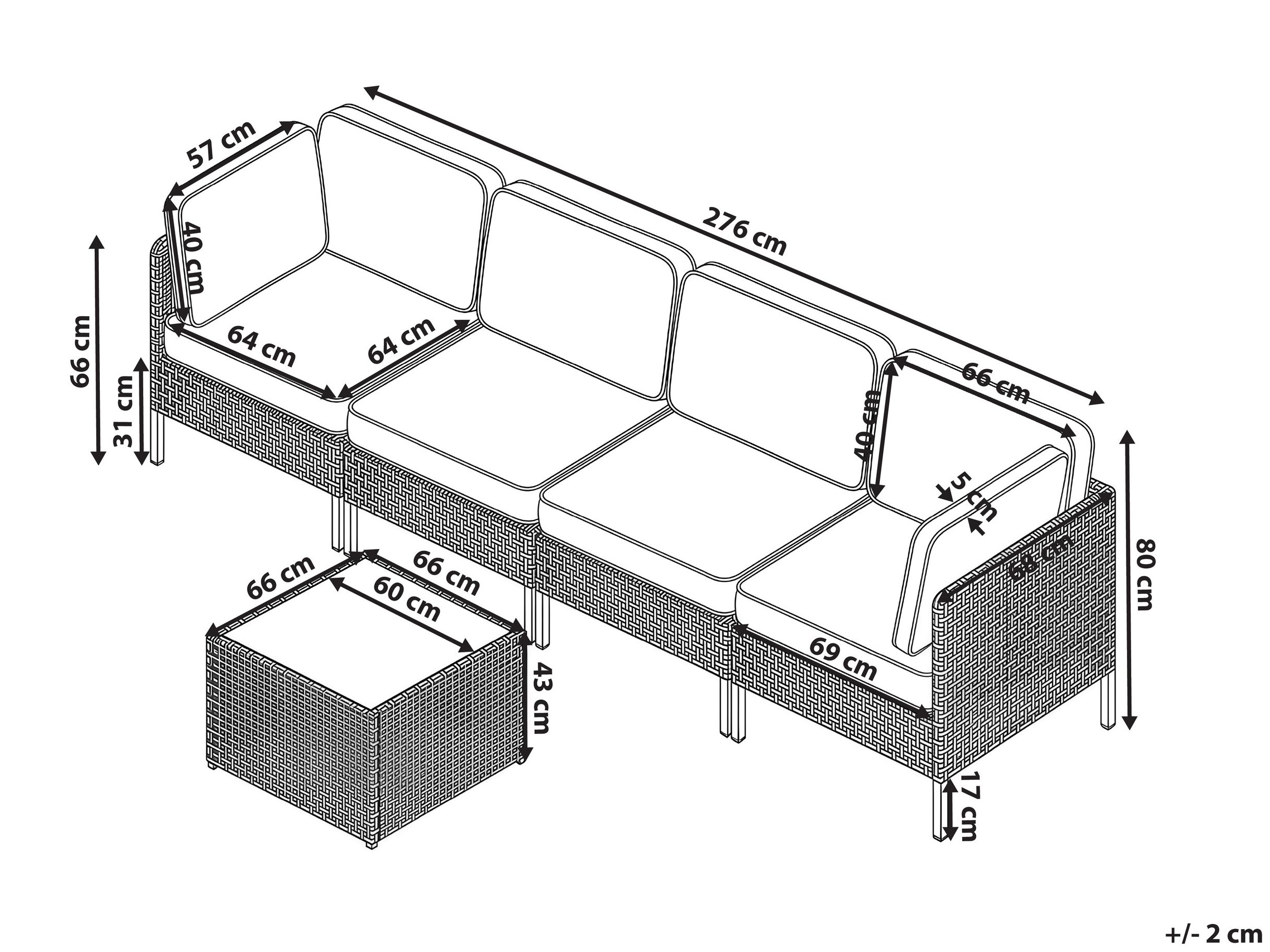 43 x 66 x 66 cm