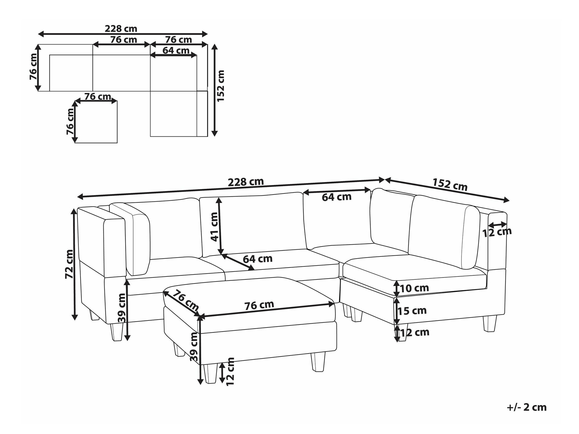 39 x 76 x 76 cm