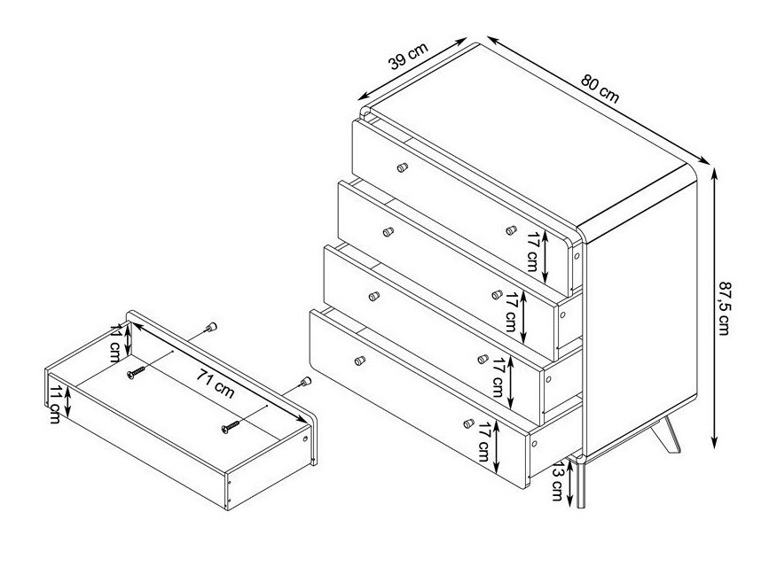 Kumodes izmēri: