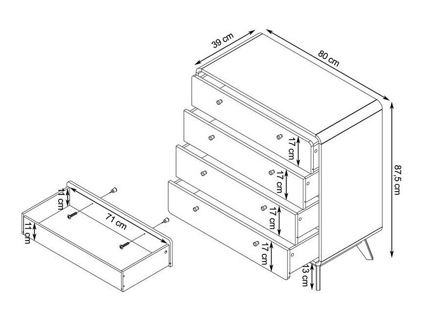 Kumodes izmēri: