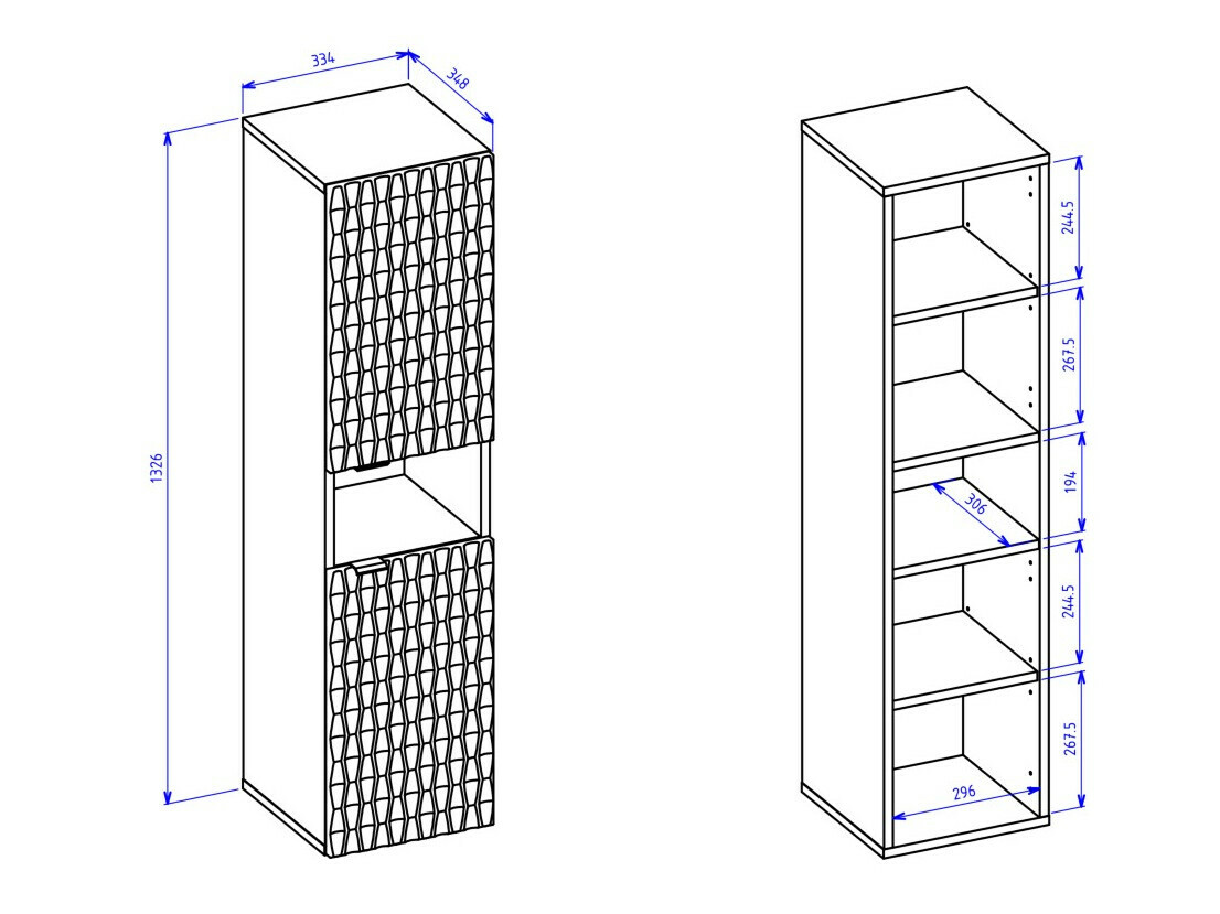 80.8 x 33.4 x 34.8; 132.6 x 33.4 x 34.8 cm