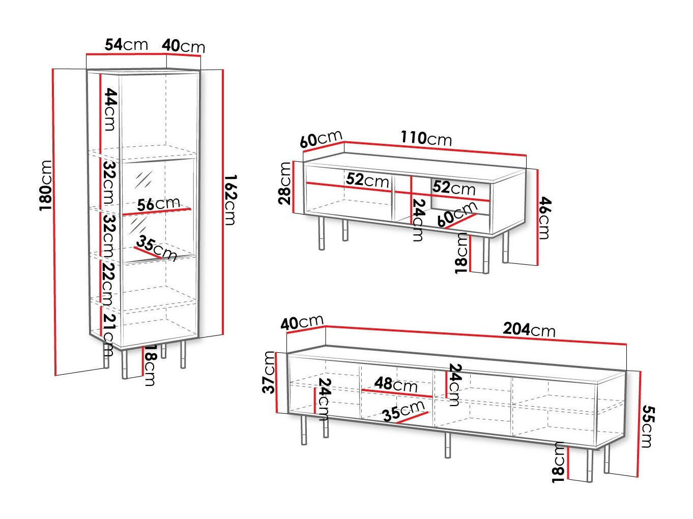 55 x 204 x 40 cm