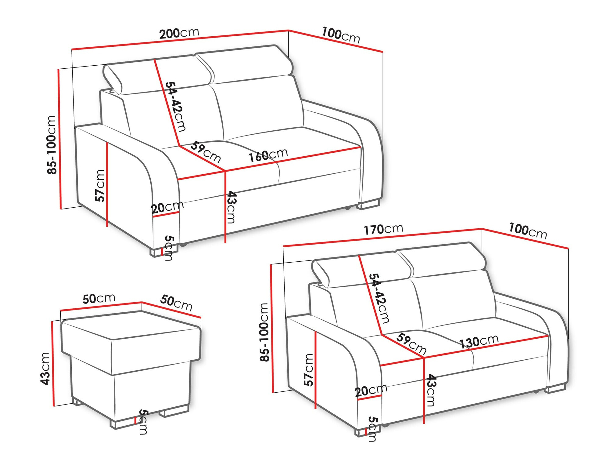 85 x 200 x 100 cm