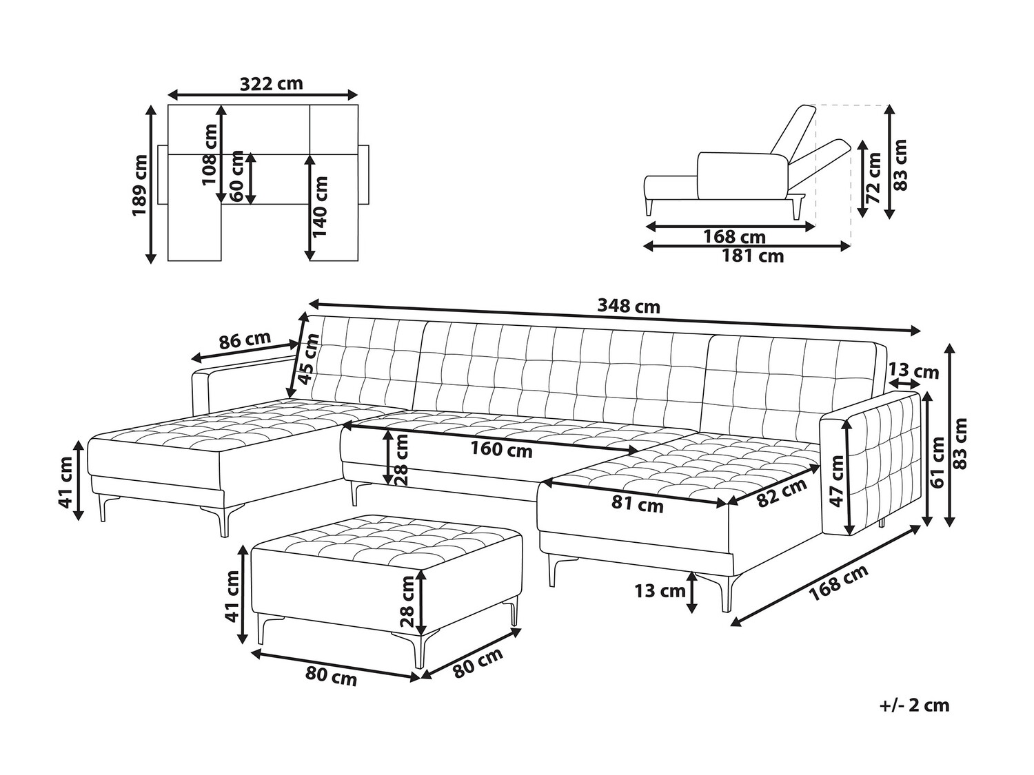 Pufa izmēri: