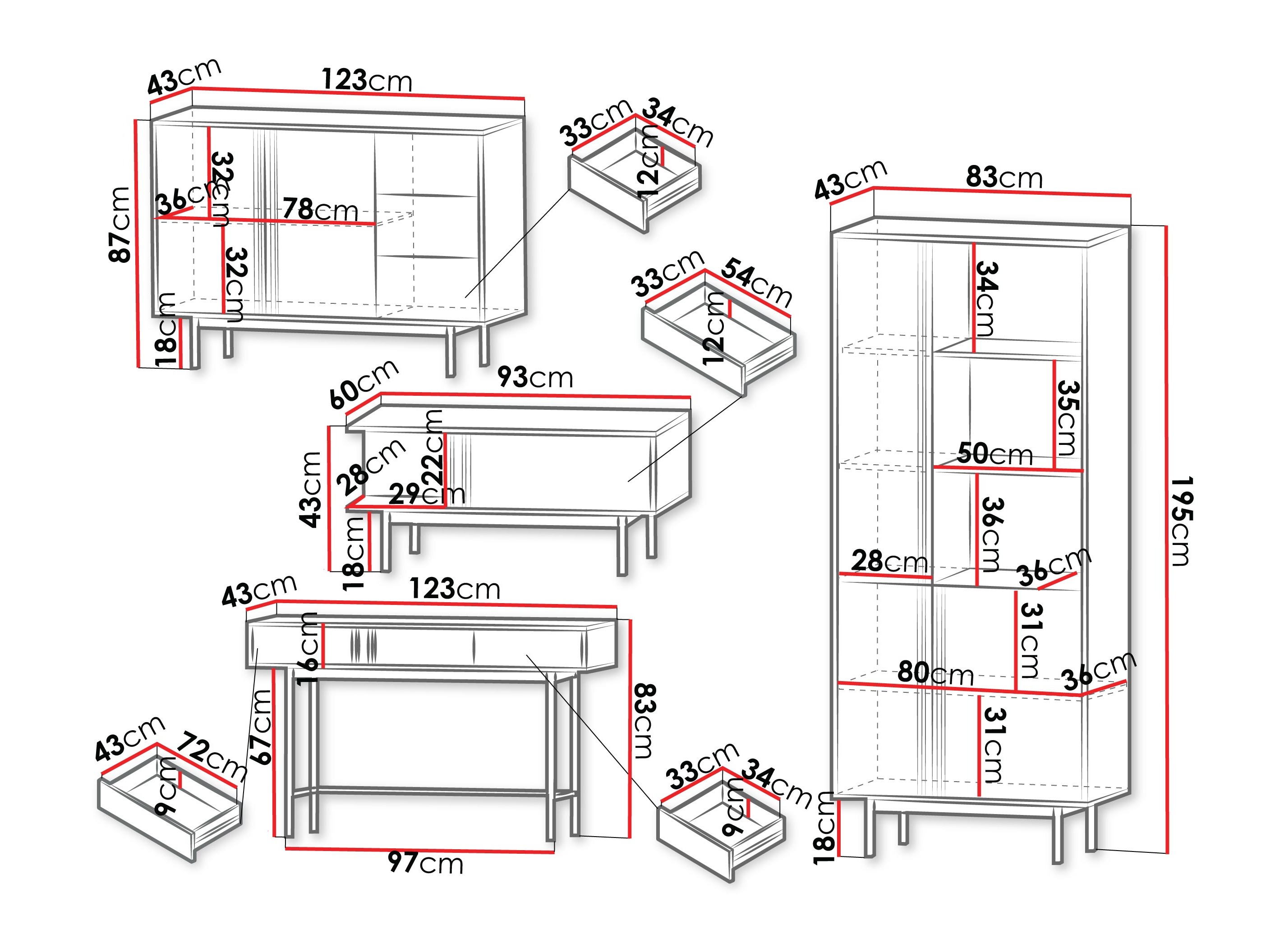 195 x 83 x 43 cm