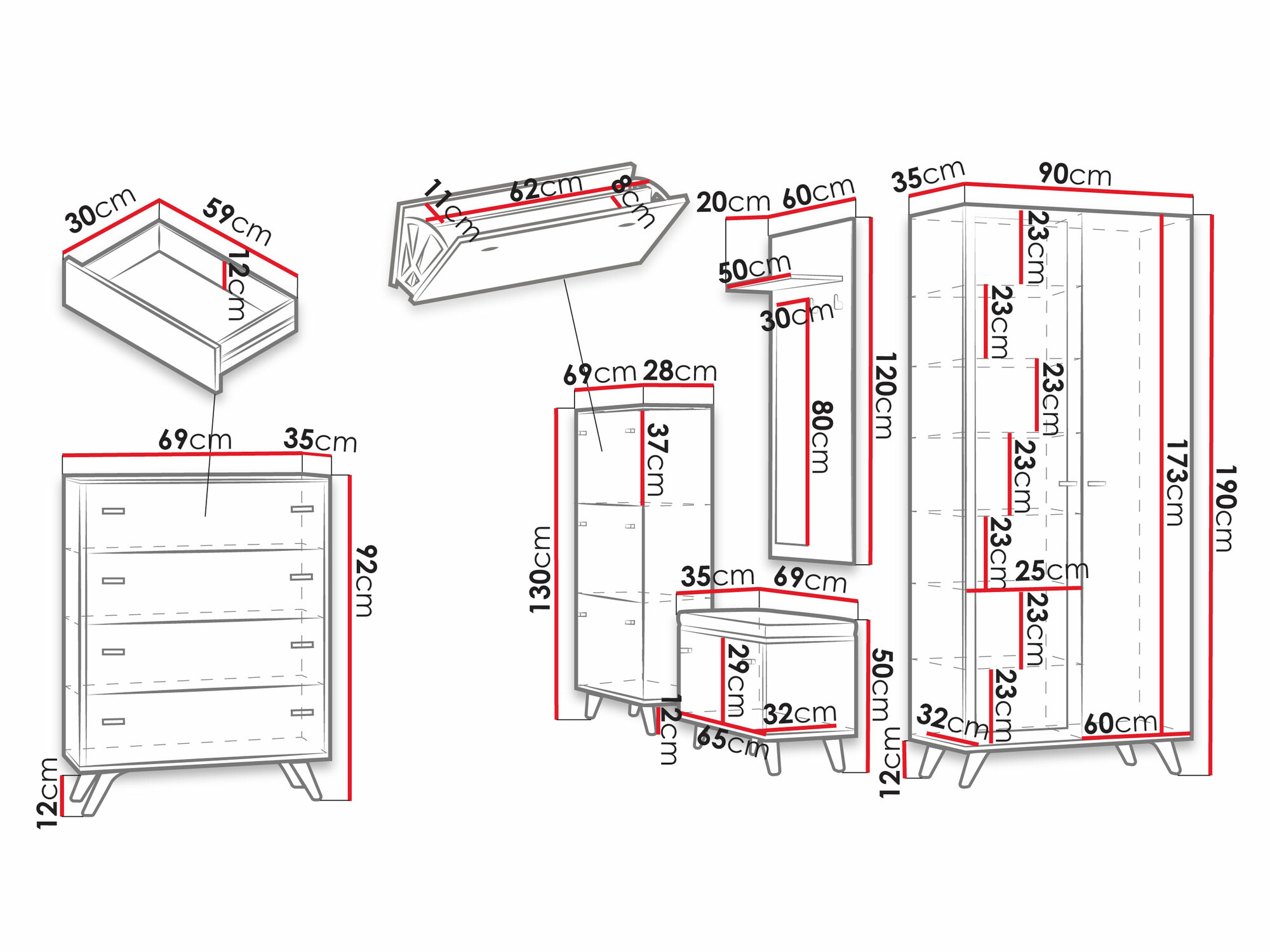 Ar komplekta vizuālo izskatu esmu ļoti apmierināta,piegādes ātrums un attieksme perfekta.Neesmu apmierināta tikai ar skapi,jo ļoti nestabils un atverot durvis viegli gāžas uz priekšu tāpēc mūsu risinājums bija piestiprināt pie sienas.