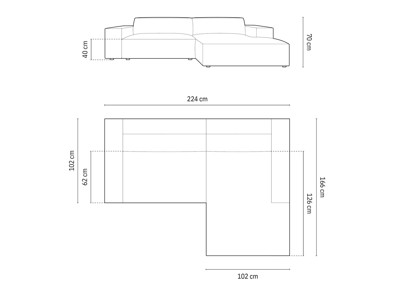70 cm  224 cm  166 cm