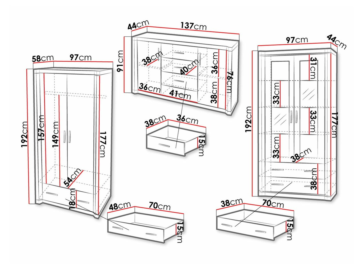 192 x 97 x 44 cm