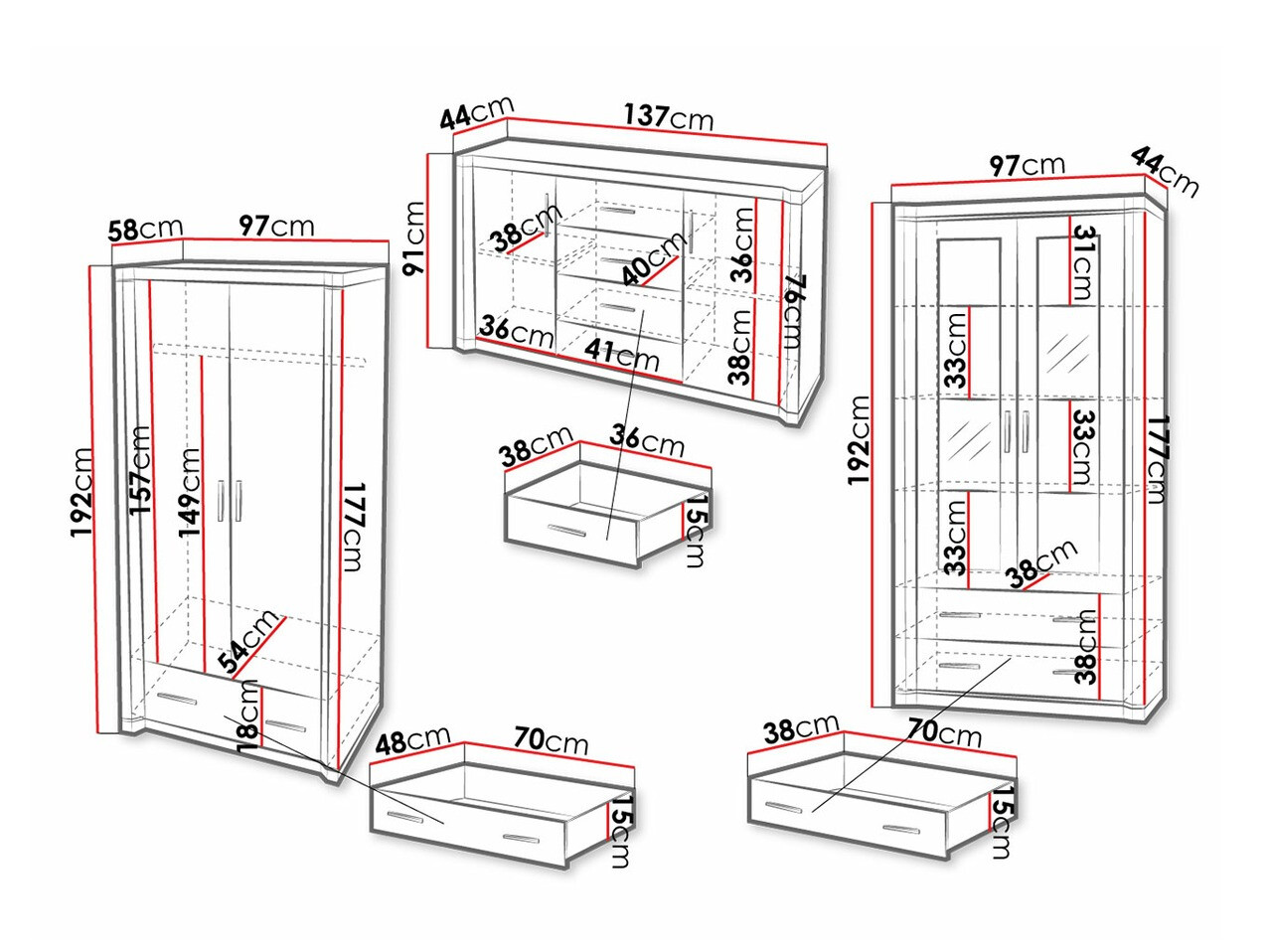 192 x 97 x 44 cm