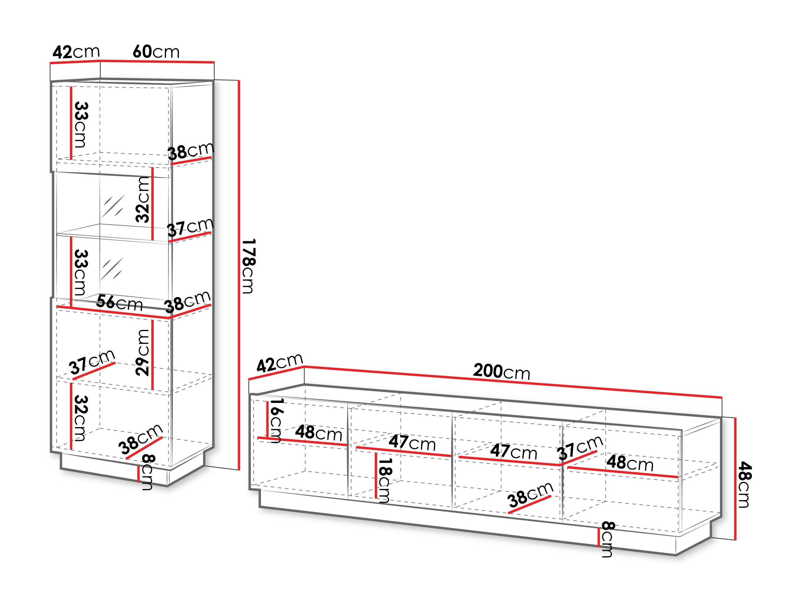 48 x 200 x 42 cm