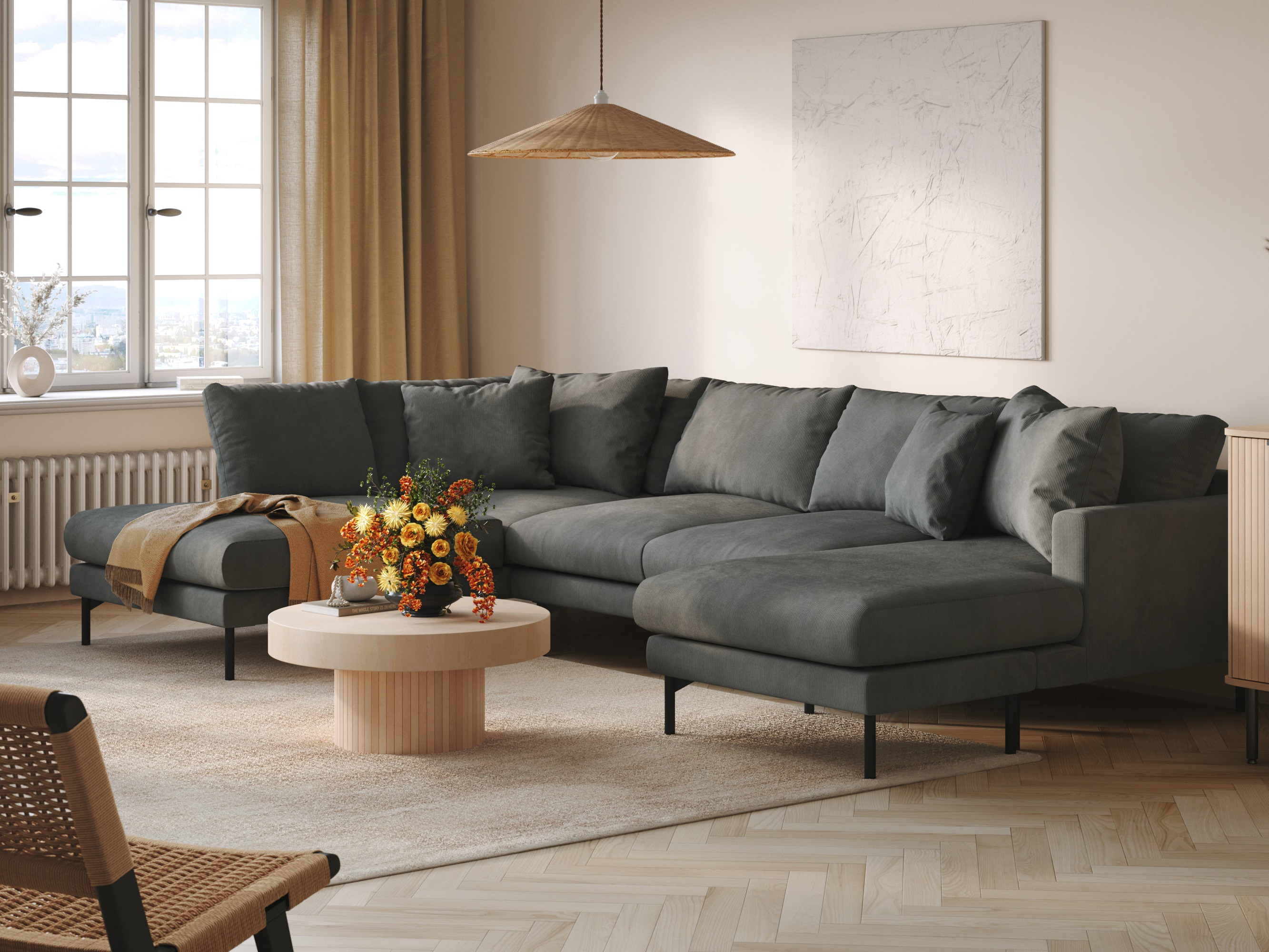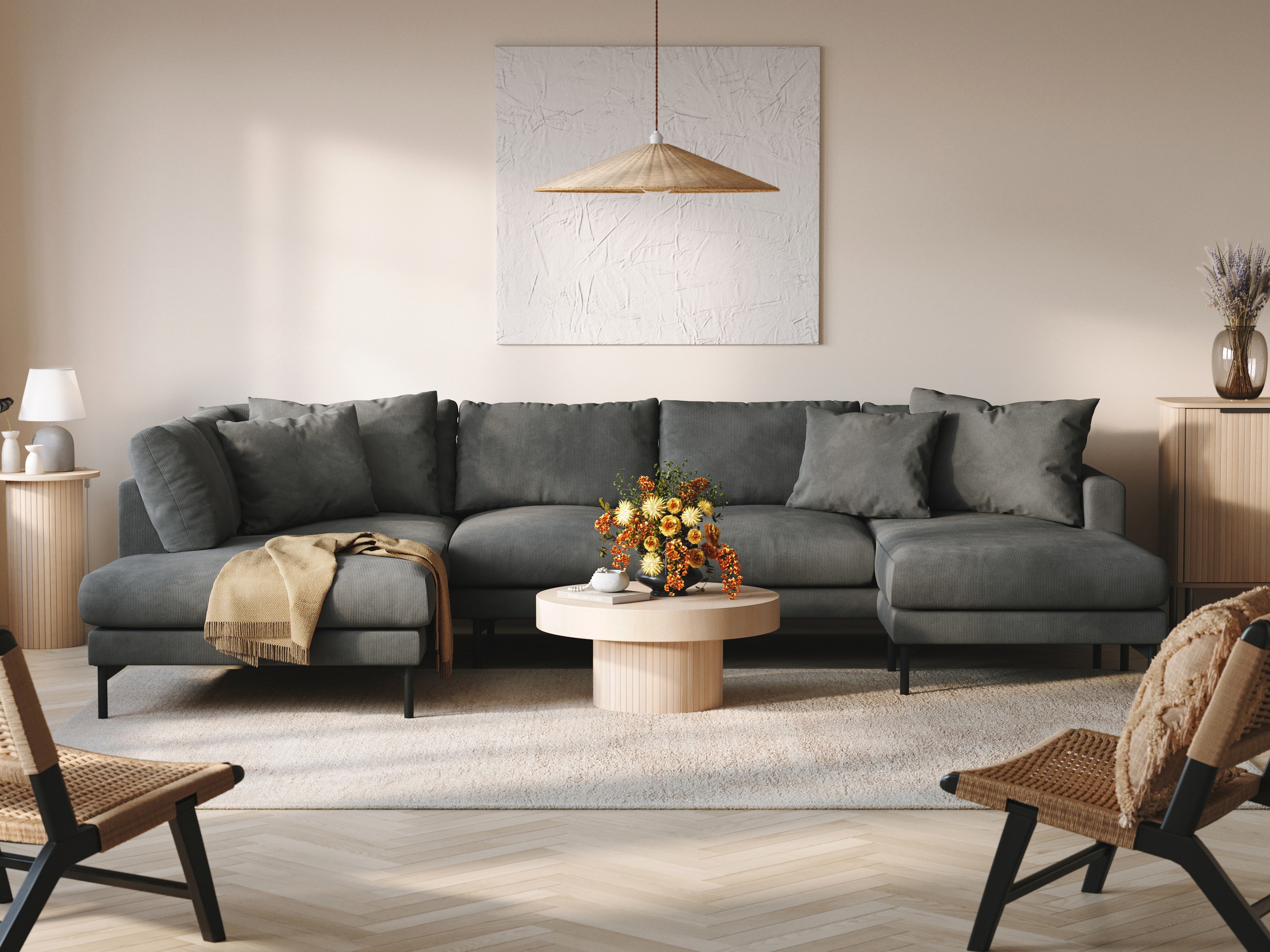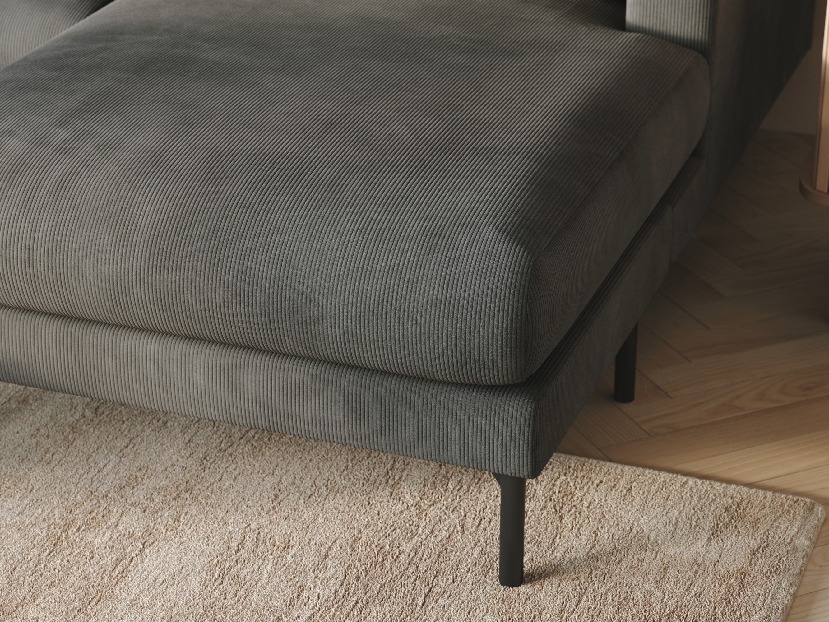 Smalkā auduma struktūra ar izteiksmīgām svītrām piešķir mēbelēm izsmalcinātu izskatu. Pateicoties maigajai virsmai, audums var mainīt nokrāsu atkarībā no apgaismojuma. Šī ir lieliska izvēle gan mūsdienu, gan minimālisma stilā iekārtotiem interjeriem. Lai saglabātu auduma sākotnējo izskatu, virsmu ieteicams kopt tikai ar maigiem,mīkstajām mēbelēm paredzētiem tīrīšanas līdzekļiem.